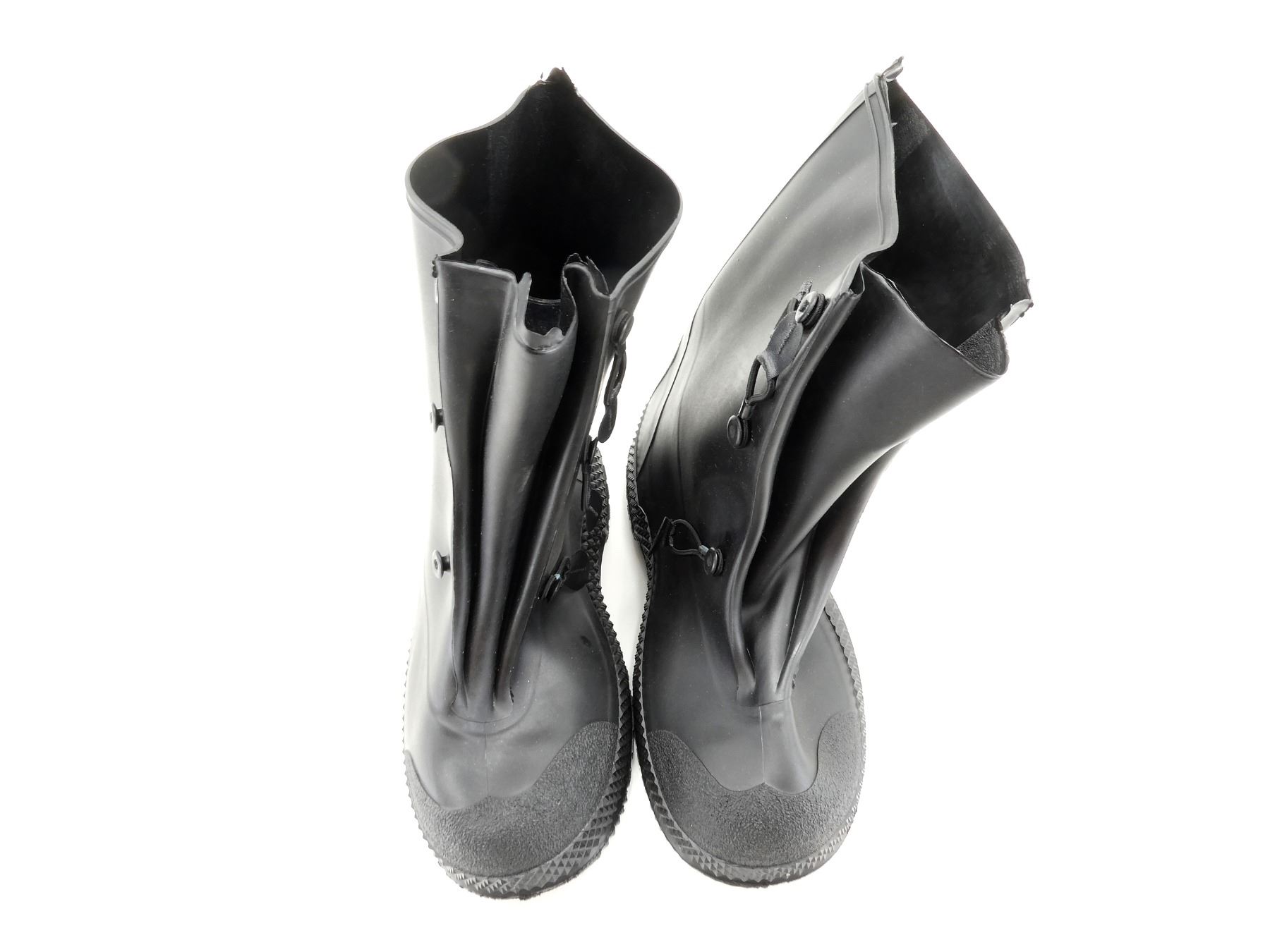 (1) MODERN WARRIOR GHILLIE SUIT, JACKET, PANTS & HEAD / FACE COVER WITH CARRY BAG, GREEN CAMO MESH WITH YARN ATTACHED, UNISEX, JACKET HAS SNAP FRONT CLOSURE, ELASTIC STRETCH WAIST, PANTS HAVE ELASTIC STRETCH WAIST, PANT LEGS HAVE ELASTIC STRETCH BOTTOMS, JACKET SHOULDER WIDTH APPROX. 23", PANT WAIST APPROX. 43" WHEN STRETCHED & (1) PAIR OF BLACK RUBBER GALOSHES, MEN'S SIZE 9-10, VARIOUS MARKINGS, ELASTIC LOOP & CATCH CLOSURE, APPEARS NOS. SEE PHOTOS.