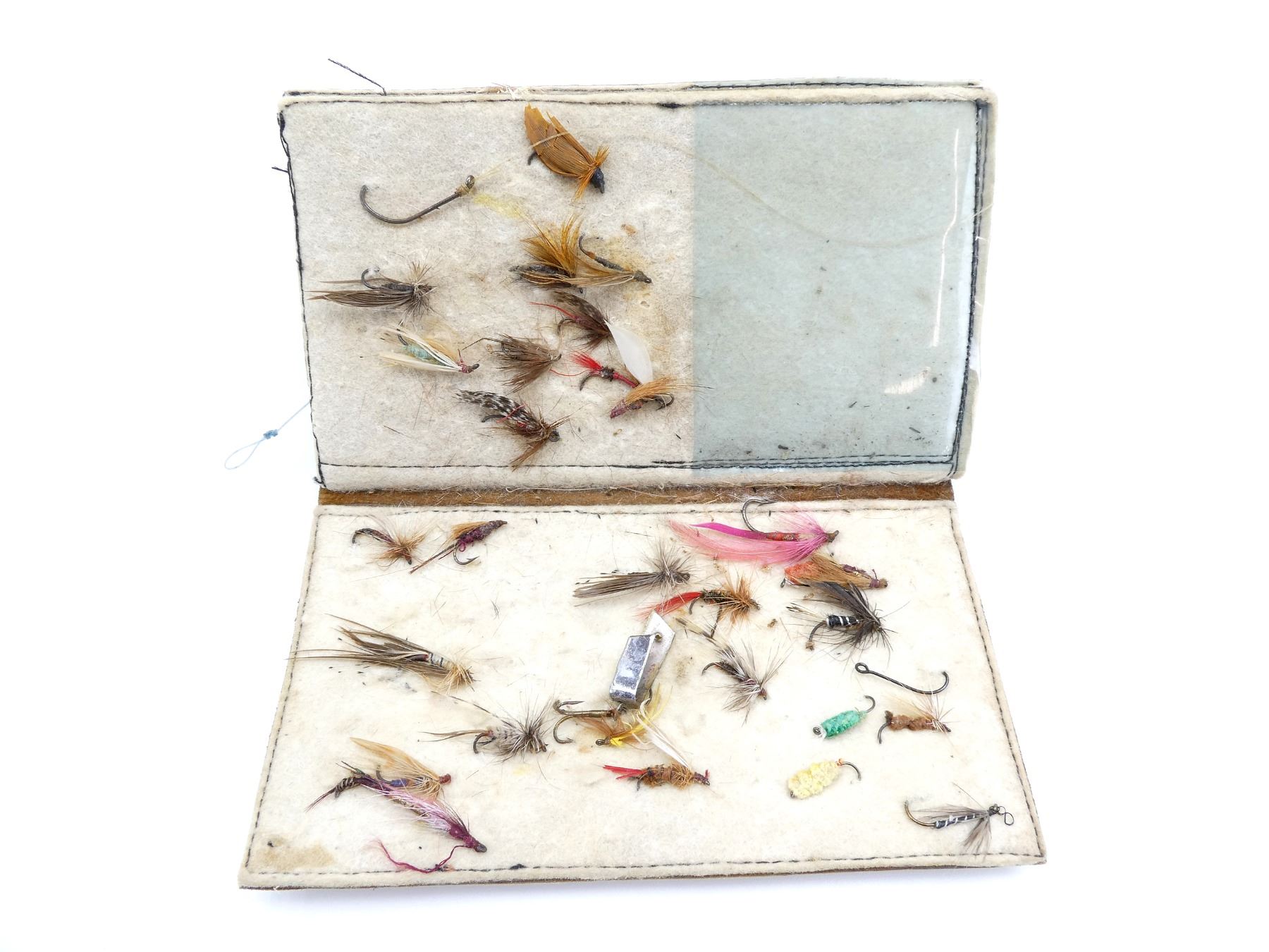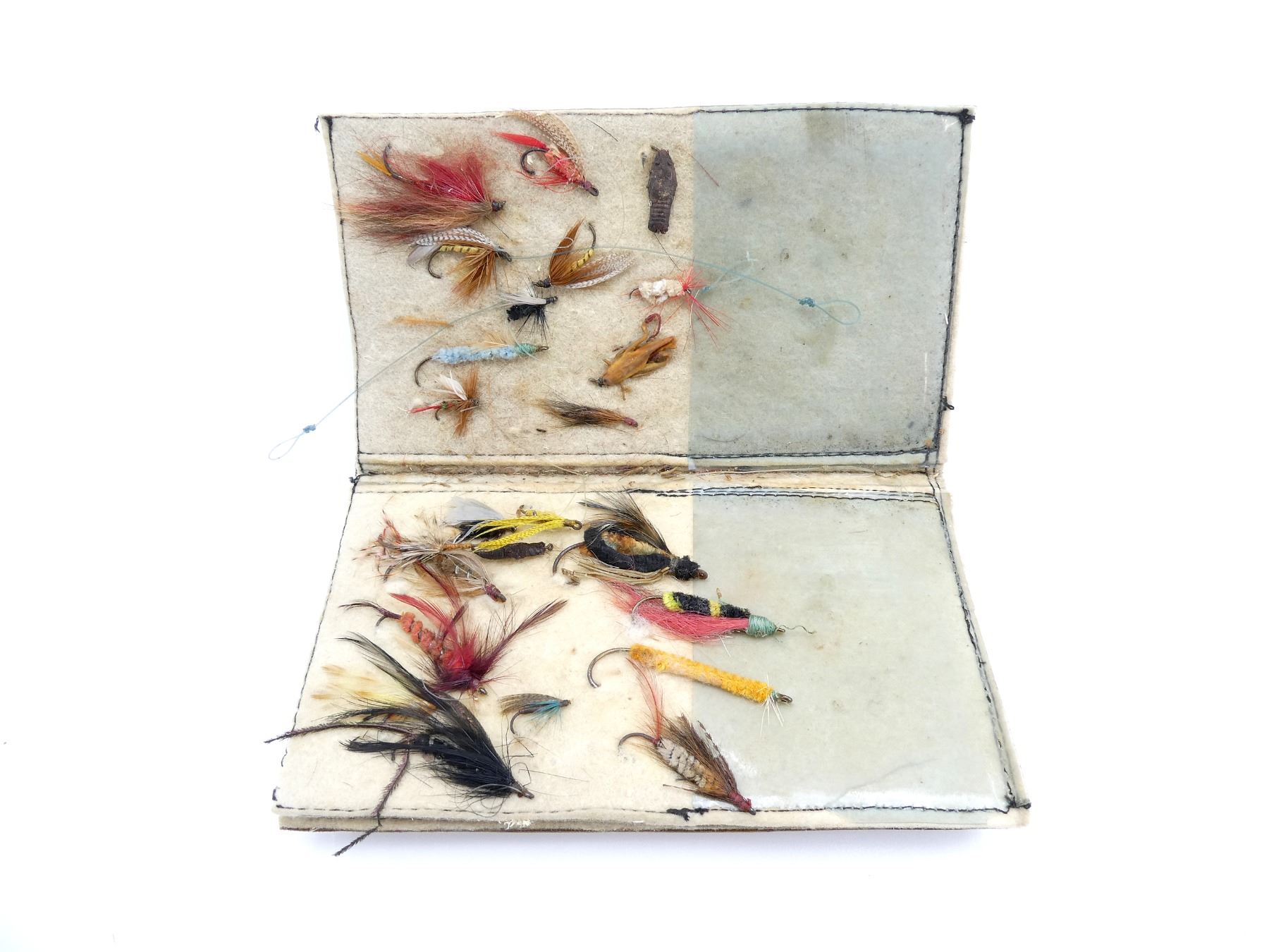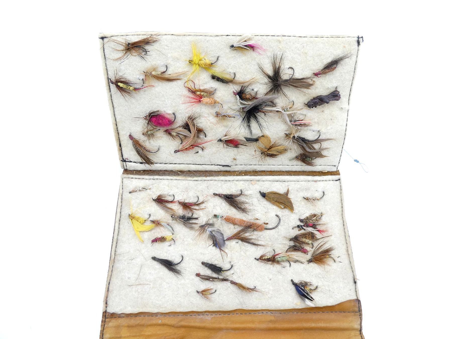 Lot 44008 VINTAGE LEATHER PACK OF TROUT FLY FISHING FLIES