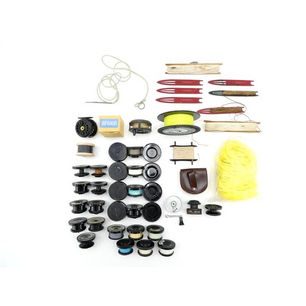 ASSORTED FISHING REEL SPOOLS, ROPE, ETC. LOT