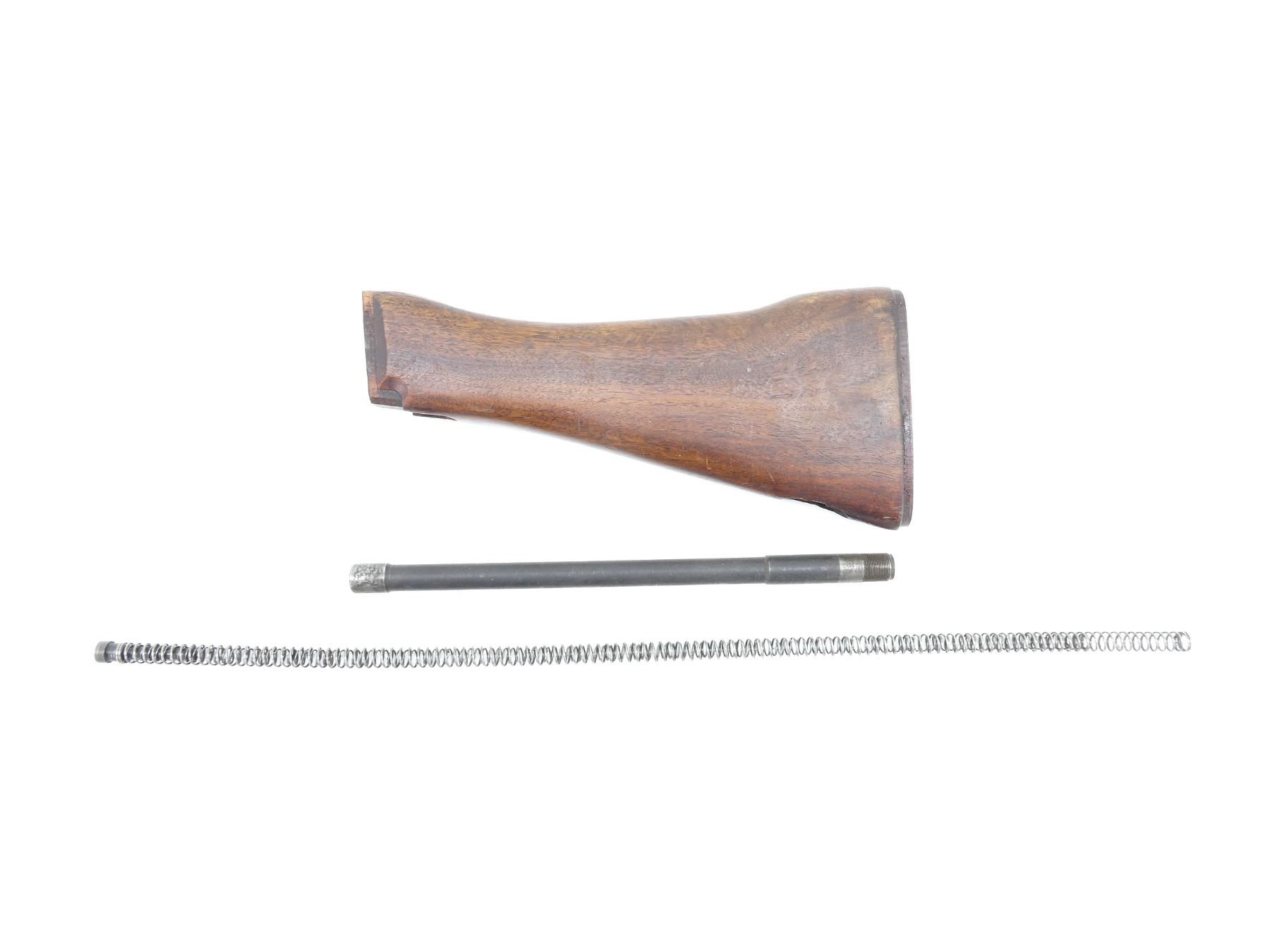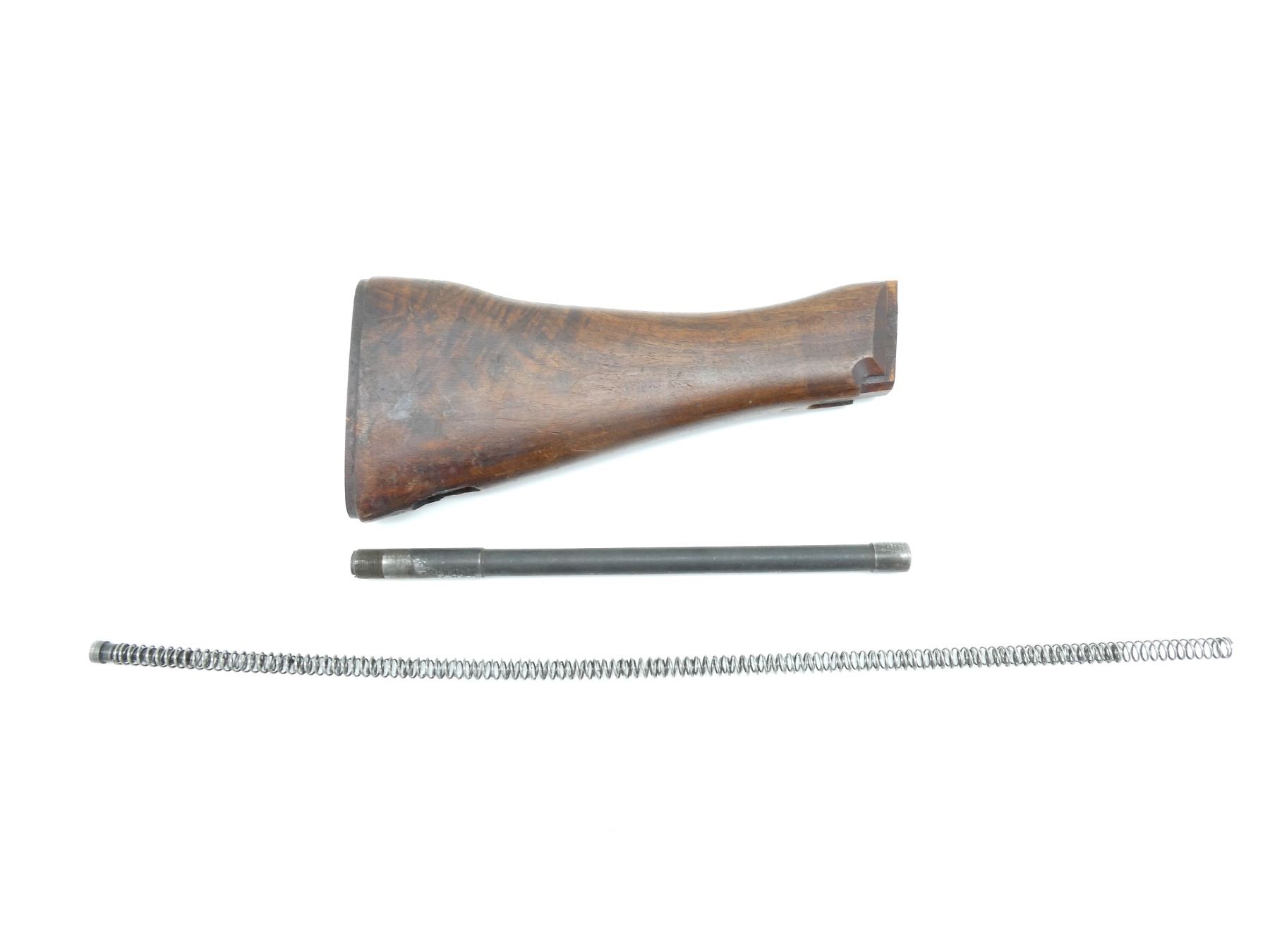 (1) WOOD CONSTRUCTION "N (NORMAL)" BUTT STOCK, OAL APPROX. 10.5", (1) RETURN SPRING TUBE & RETURN SPRINGS WITH PLUNGER. MAY REQUIRE FITTING. SEE PHOTOS.
