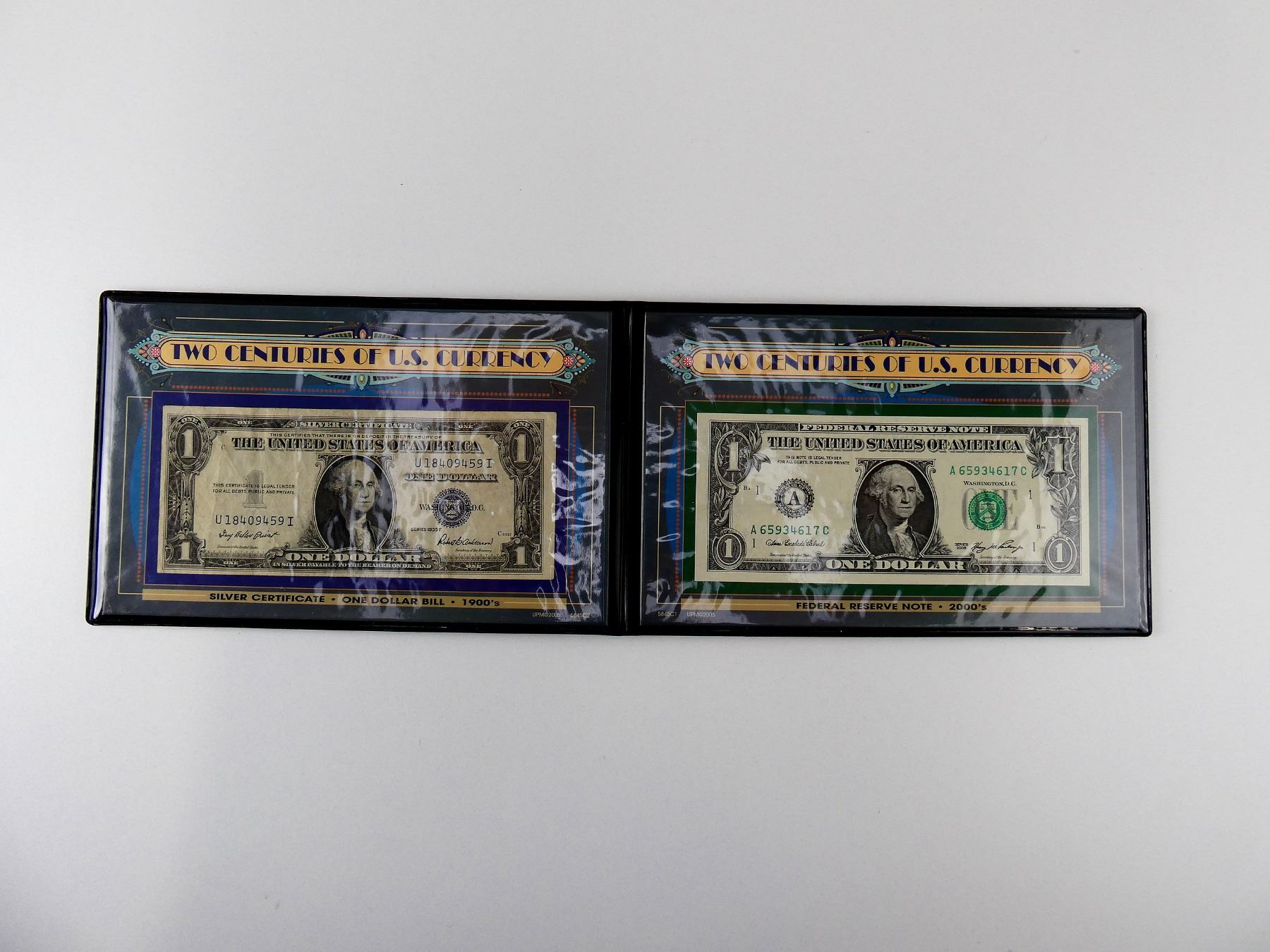 LOT INCLUDES; (1) ONE DOLLAR SILVER CERTIFICATE, DATED 1935 & (1) ONE DOLLAR FEDERAL RESERVE NOTE, DATED 2006, BOTH IN PROTECTIVE CASE. SEE PHOTOS.