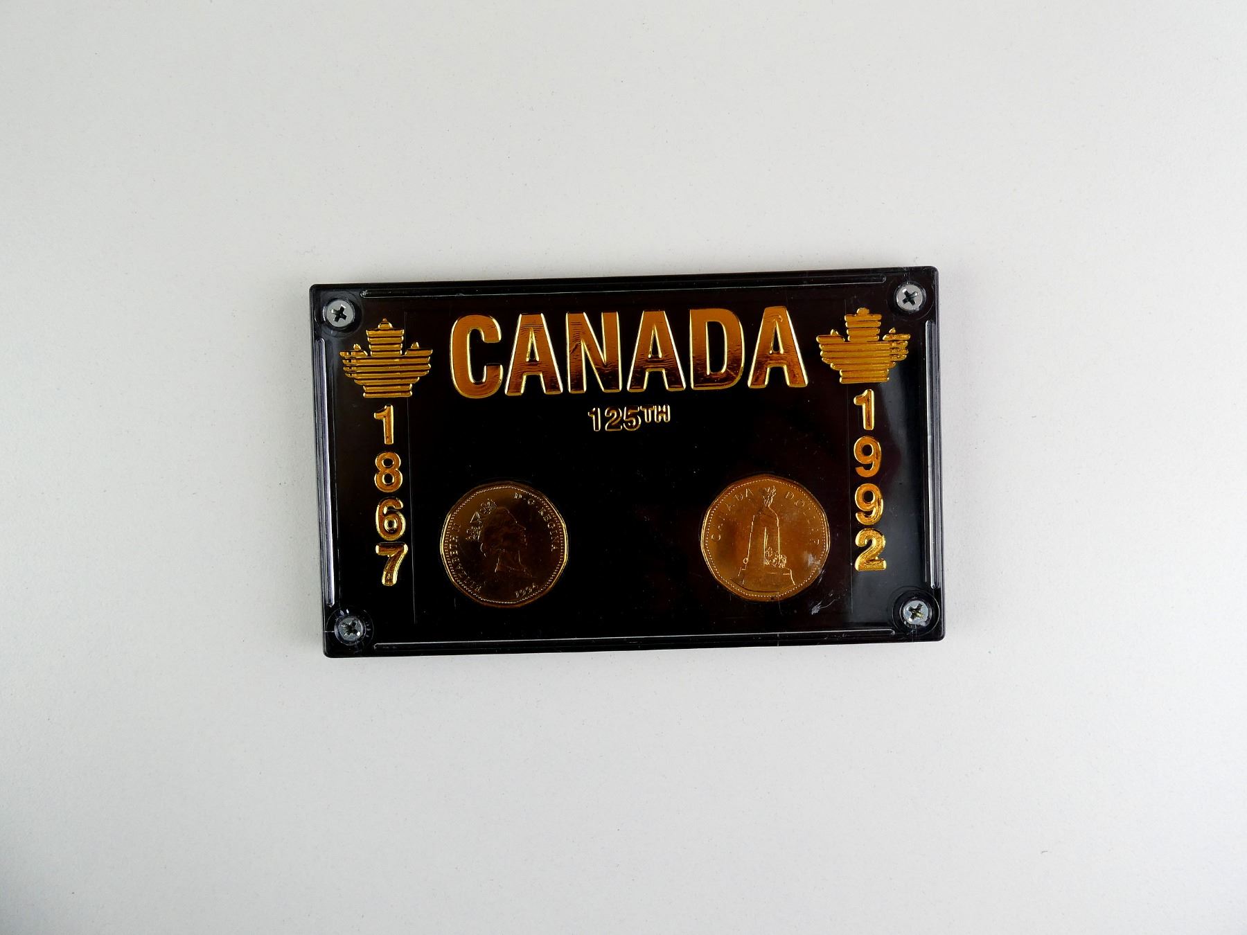 LOT INCLUDES; (2) ONE DOLLAR COINS, DATED 1994, IN PROTECTIVE CASE MARKED: "CANADA, 125TH, 1867, 1992" WITH MAPLE LEAVES. SEE PHOTOS.