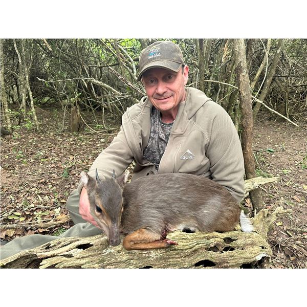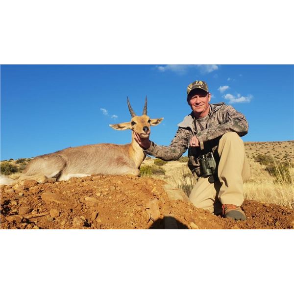10-day/10-night 1x1 'Tiny 12 Starter Pack' safari for one hunter and one non-hunter in the Karoo and on the coast of South Africa - includes trophy fees for 1x of each of the following sought after 'Tiny 12' species: Vaal rhebuck, mountain reedbuck, steenbok, grey duiker and blue duiker. Karoo2Coast Safaris is an amalgamation of two private game farms, namely Little Africa and Olivewoods located between Graaff-Reinet in the Karoo and Salem on the coast. This hunt is available in 2026 or 2027 and may be upgraded to include additional species, days, hunters and non-hunters, all at current price list. Transportation during hunting is mostly by vehicle. This package includes field prep, delivery of trophies to Karoo Taxidermy, RT road transfers from Chief Dawid Stuurman International Airport in Port Elizabeth, exclusive services of PH, trackers, skinners and lodge staff, licenses/permits, full board luxurious lodge accommodations, laundry service, all meals, soft drinks and alcoholic beverages in moderation. Not included are dipping/packing, shipping of trophies, international/domestic flights, rifle hire/ammo, other activities or tours, personal expenses, meals/beverages outside of lodge, before/after hunt accommodations and gratuities. NOTE: No substitutions on species to be hunted, no credits for included species not hunted; hunt cannot be scheduled concurrent with any other donation package. DALLAS SAFARI CLUB THANKS KAROO2COAST SAFARIS FOR THIS 100% DONATION. Hans Putziger, 011 27 83 938 1479, 011 27 82 801 2401, info@karoo2Coastsafaris.com, www.Karoo2coastSafaris.Com, BOOTH #1325.