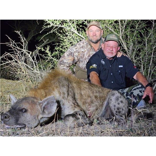 Hunters Creek Safari Outfitters is pleased to donate an incredible 6-day/5-night 2x1 spotted hyena and buffalo cow rifle safari for two hunters in Malalane-Mpumalanga, South Africa - includes trophy fees for 1x of each species to be apportioned by hunters. Also included is the choice of a 1-day photographic safari in Kruger National Park OR 1-day of tiger fishing. This hunt is available August-October 2026 or 2027 and may be upgraded to include buffalo bull, crocodile, hippo, kudu, etc. and/or by extending days, all at outfitter's current price list and dependent on quota availability. Additional hunters are welcome at $495/day; non-hunters are welcome at $295/day. Transportation during the hunt is mostly by vehicle with hunting done by traditional walk & stalk. This package includes field prep, full time service of a licensed experienced Professional Hunter, trained staff (trackers & skinners), hunting permits/licenses, transportation to local shipper, RT transfers from Nelspruit International Airport, luxury lodge accommodation, delicious homecooked meals, beverages, local beer/wine and laundry/cleaning services. Not included are taxidermy, dip & pack services, rifle hire at $65/pp, trophy fees for additional animals taken or wounded, sight tours and gratuities. NOTE: $1,500/pp deposit is required at booking to secure hunt dates and will be credited towards the final invoice when the safari is concluded. Come and hunt with us to experience the REAL AFRICA. DSC references include Danny & Linda Danell, Lee & Lisa Friend, David & Kathy Allison, Bruce & Arlene Reeves, Pete & Maryann Verde, Dr. Don Senter, Dr. Timothy & Gina Archer, Luke & Lauren Parkhurst, Brooks & Elyse Puckett, Wilson & Susan Stout and Evan & Ashley Peterson. DALLAS SAFARI CLUB THANKS HUNTERS CREEK SAFARI OUTFITTERS FOR THIS 100% DONATION. Madelein McSeveney, 011 27 79 529 1260, info@hunterscreek.co.za, www.HuntersCreek.Co.Za, BOOTH #2257.