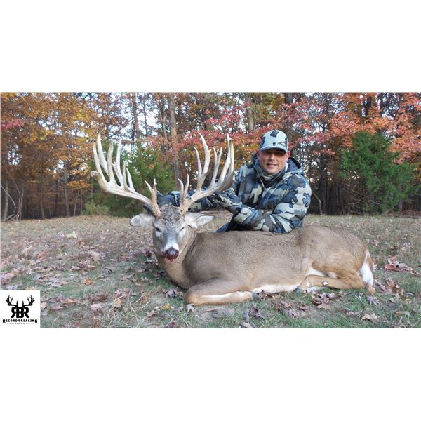 3-day/3-night 1x1 midwestern whitetail deer hunt for one hunter in Missouri - includes whitetail scoring up to 225". Method of take is hunter's choice. This estate hunt is available August-December 2026 and may be upgraded to include elk, aoudad and exotics, all at the current price list. Additional hunters are welcome at current rates; non-hunters are welcome at $250/day. Transportation during the hunt is mostly by vehicle with hunting done by blinds. This package includes field prep, dressing, caping, transportation to taxidermist, 1x1 guiding, hunting license, private lodge accommodations, home-cooked meals, snacks and fully stocked beverage fridge. Not included are crating/packing and gratuities. Arrival/departure point is at the ranch near Fulton, Missouri. Nearest airports are St. Louis and Columbia, MO. DALLAS SAFARI CLUB THANKS RECORD BREAKING RANCH FOR THIS 100% DONATION. Eric Stonecipher, 740-801-1935, estonecipher@aol.com, RecordBreakingRanch.Com.