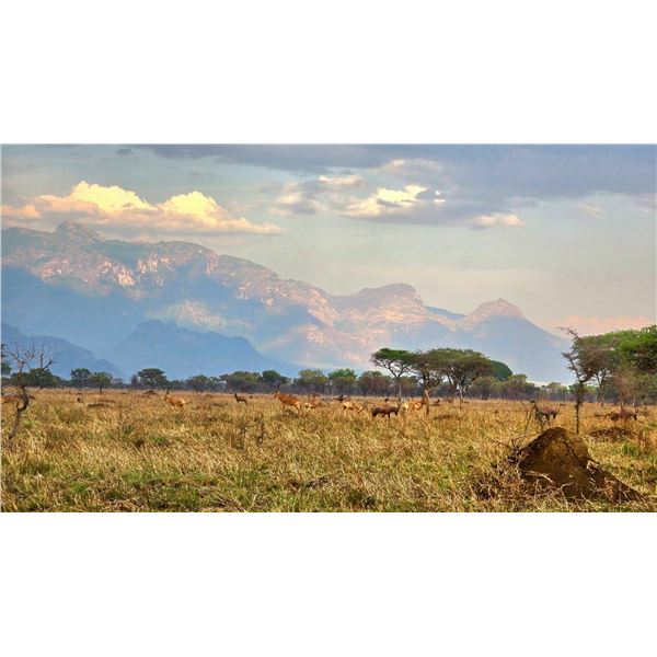 6-day 1x1 plains game rifle safari for one hunter and one non-hunter in Southern Karamoja, Uganda. Species to be hunted at cost are: 1x Jackson's hartebeest, 1x Patterson's eland, 1x East African Defassa waterbuck, 1x Eastern Bohor reedbuck, 1x Guenther's dik-dik and 1x Sudan oribi. This hunt is available in 2027 or 2028 and may be upgraded to include East Africa sitatunga, Nile buffalo, Guenthers dik dik and Topi at current price list, dependent on tag availability. NOTE: upgrades cannot be confirmed immediately, only a maximum of 3 months before the hunt date. Additional hunters (up to two more) are welcome at $9,000, plus all permits (+/-$1,200); non-hunters are welcome at $2,000. Transportation during the hunt is mostly by vehicle and foot with hunting done by spot & stalk. This package includes field prep, 1x hunting permit, 1x trophy export permit, RT ground transfers from airport to camp, services of PH/hunting team, full board lodging, beverages, all meals and daily laundry service. Not included are trophy fees (applicable for year of hunt), dip & pack service, transportation to shipper, firearm import permit, before/after hunt expenses/accommodations and gratuities. NOTE: $1,000 deposit is required at booking to secure hunt dates and will be applied towards final invoice. DALLAS SAFARI CLUB THANKS KOS SAFARIS UGANDA FOR THIS 100% DONATION. Gareth Lecluse, 011 256 070 098 9257, 011 263 77 227 8388, garethlecluse.hunts@gmail.com, www.UgandaProHunts.Com.