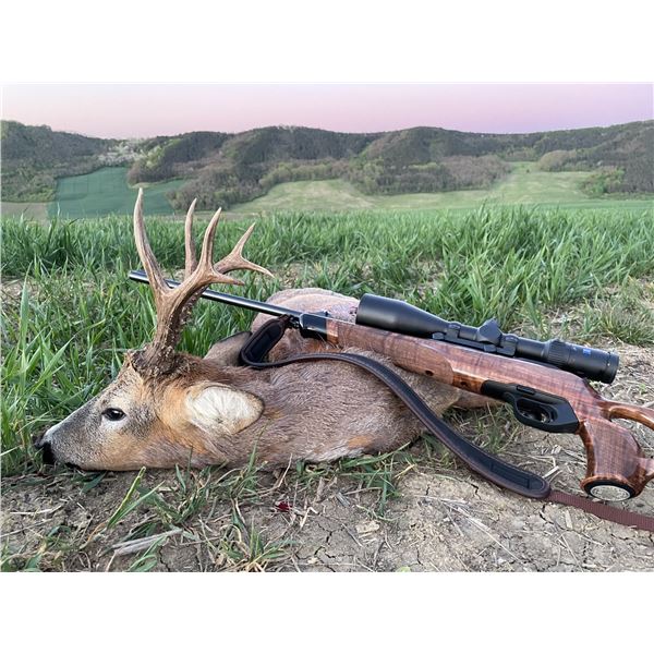 6-day/5-night 1x1 European roe deer rifle hunt for two hunters and two non-hunters in Transylvania, Romania - includes trophy fees for 2x best available roe deer (1x for each hunter). This free-range hunt is available May-August 2026 or 2027 and may be upgraded to include additional roe deer at $4,000/each. Additional hunters are welcome at $200/day;l non-hunters are welcome at $100/day. Transportation during the hunt is mostly by vehicle with hunting done by spot & stalk. This package includes field prep, transportation to shipper, lodge accommodations, Wi-Fi, full bar, beer/wine, non-alcoholic beverages and all meals. Not included are dip & pack service, licenses/permits at $150/hunter, RT ground transfers from Sibiu International Airport at $100/pp and gratuities. DSC references include John Chilton, John Hoestenbach, Tim Doucet, William Nash and Larry Weishuhn. DALLAS SAFARI CLUB THANKS HUNTING IN AUSTRIA, MIESENBACH FOR THIS 100% DONATION. Klemens Bugelnig, 011 43 26328232, 011 43 676840731503, office@gvmf.at, BOOTH #1338.