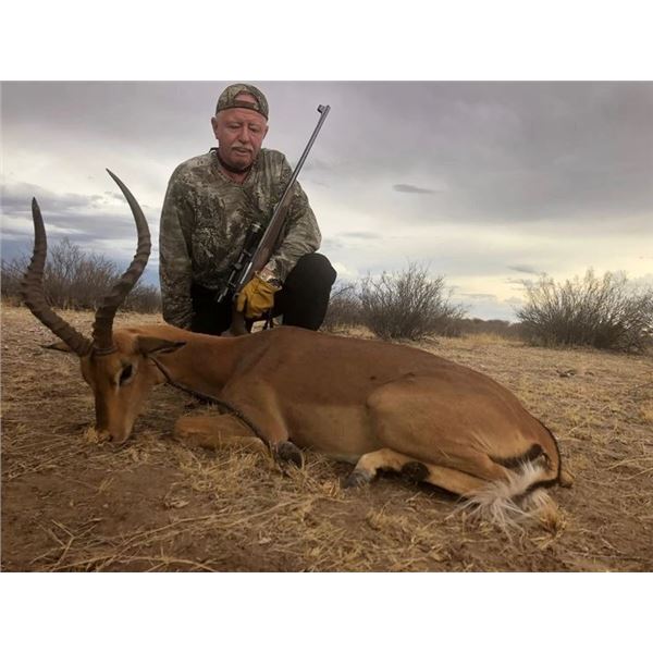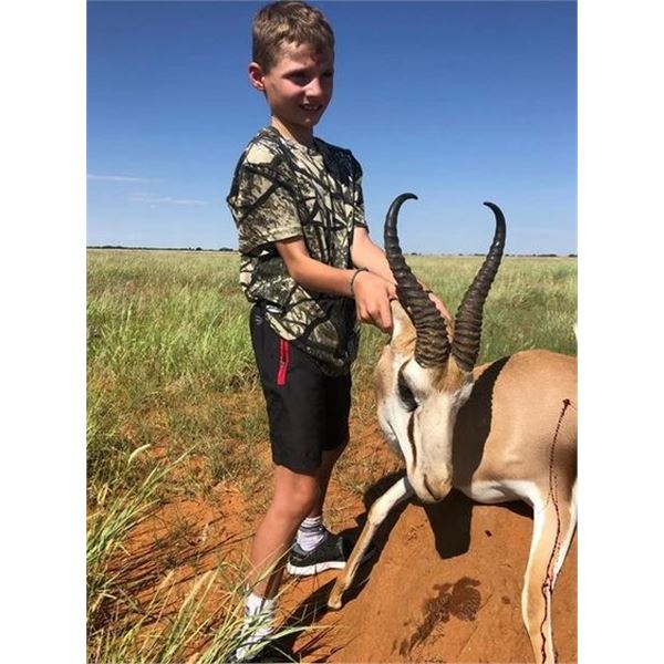Package includes: Lodging in an African Bungalow, meals & beverages, professional hunters, field prep, trackers, skinners, transport during hunt, laundry service,2 Gemsbok, 1 Blesbok, & 1 Impala. Not included: Tips to guides & staff, transportation to/from camp , airport pickup/dropoff ($500/ group/one way), gun rental ($200/gun), and taxidermy/shipping.Airfare to Kimberly, South Africa not included.