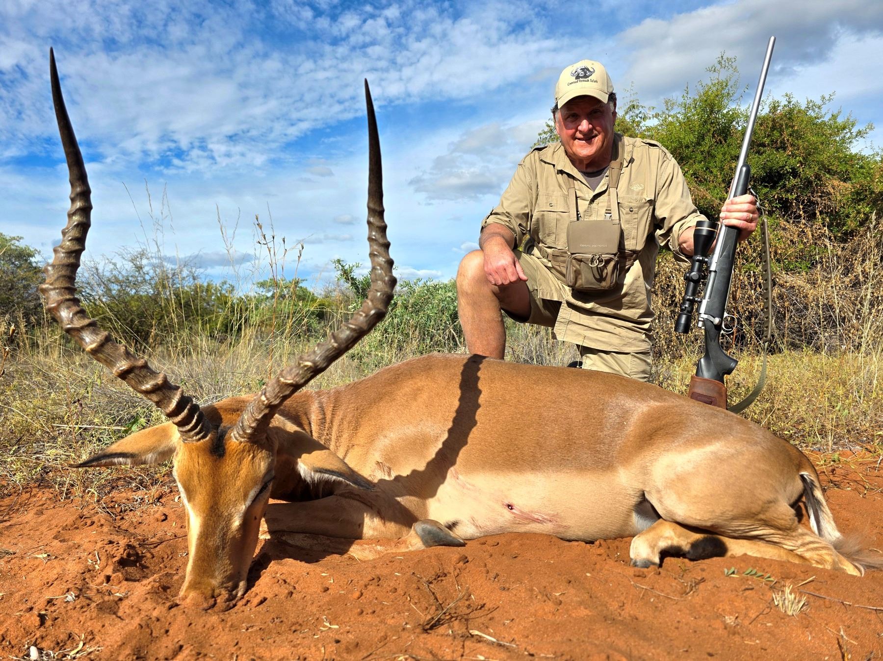 Coenraad Vermaak Safaris (CVS) is pleased to donate a 7-day/8-night 2x1 plains game rifle safari for two hunters and two non-hunters in Bambisana Limpopo, South Africa - includes trophy fees for 2x warthog, 2x impala, 2x blue wildebeest, 2x red hartebeest and 2x gemsbok (1x of each species for each hunter). This hunt is available in 2026 or 2027 (excluding June and July) and may be upgraded to include additional plains game species such as kudu, nyala and many others at the applicable year's price list. Observers and additional hunters may also be added and will be charged accordingly. CVS terms and conditions of business apply. Bambisana is an outstanding destination that has provided first-class hunting experiences and quality trophies consistently. The area, with its varied typography and vegetation spanning ±50 000 acres, is home to a multitude of species including 4 of the Big 5 and offers the opportunity to hunt over 34 species of game - ranging from buffalo to pygmy antelope and small nocturnal cats. The hunting is world class, the accommodations are excellent, as is the catering and service. Not to be missed!Transportation during the hunt is mostly by vehicle and foot with hunting done by spot & stalk. This package includes field prep, transportation of trophies to CVS preferred taxidermist in RSA, licenses/permits, luxurious lodge accommodations, soft drinks, bottled water, house-brand alcohol in moderation, all meals, Wi-Fi, standby generator for outages and daily laundry/housekeeping services. Not included are dip & pack service (or taxidermy), CITES permit (if giraffe is taken), license and permits for certain species not included in donation, RT ground transfers from Polokwane Airport to lodge at $985, rifle hire & ammunition (if required), domestic/international flights, accommodations before the hunt in Johannesburg at $200/night, trophy fees for additional game hunted, wounded or lost and gratuities. DSC references include Roger Key, George Chamblee, Greg Oliver, Sam Spicer, Richard & Suzie Allen, Tim Sikes, Chance Parker, Sheldon Grothaus, Clayton Williams, Justin Haynes and many more! DALLAS SAFARI CLUB THANKS COENRAAD VERMAAK SAFARIS FOR THIS 100% DONATION. Hans (Scruff) Vermaak, 011 27 83 500 6009, hans@cvsafaris.co.za, info@cvsafaris.co.za, www.CVSafaris.Com, BOOTH #1043.