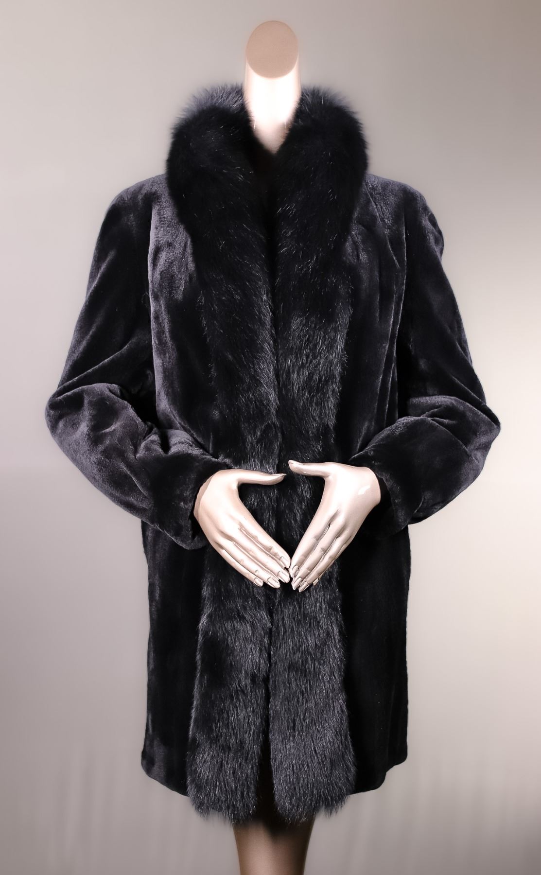 Lot 14 ALASKA FUR GALLERY: Black Sheared Mink Stroller with Fox Tuxedo