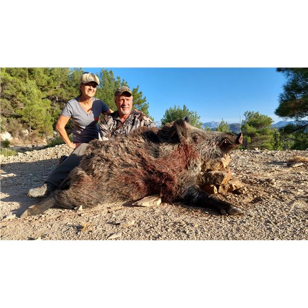 4-day/3-night 1x1 Anatolian wild boar hunt for three hunters in Turkey - includes 4x wild boars for each hunter. Method of take is rifle; silencers, night vision and thermal scopes are restricted but available for use through the donor at $200/day. This free-range hunt is available April 15-July 15, 2027 only and may be upgraded to include additional boar at $750/each. Additional hunters are welcome at $5,500; non-hunters are welcome at $2,000. The hunt will take place during the evening with transportation mostly by vehicle and night stalking. This package includes hotel/lodge accommodations, daily brunch, evening dinners and permit fee ($15,000 value) for govt. assigned warden required to accompany the group during hunting. Not included are custom handling at Ankara or Antalya Airports & RT ground transfers to camp at $1,500 for the group, field prep at $500/hunter, government fees at $500/hunter, guiding fee at $400/hunter, skinning at $500/boar, dip & pack service at $500/boar, domestic air charters between Istanbul and Ankara or Antalya Airports, before/after hunt accommodations at $150/pp and gratuities. NOTE: $2,600/pp deposit is required at booking to reserve dates and will be applied towards the final invoice. Recep Ecer, 549-316-0706, 543-808-1888, turkishfrontier@gmail.com, recepecer@gmail.com, www.Frontier.Com.Tr, BOOTH #1655.