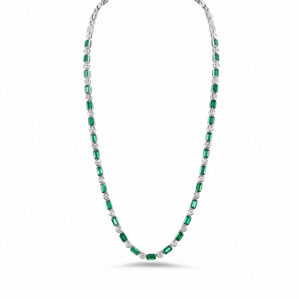Lot 32 BARANOF JEWELERS: Stunning Natural Emerald and Diamond Necklace Set in 18K White Gold