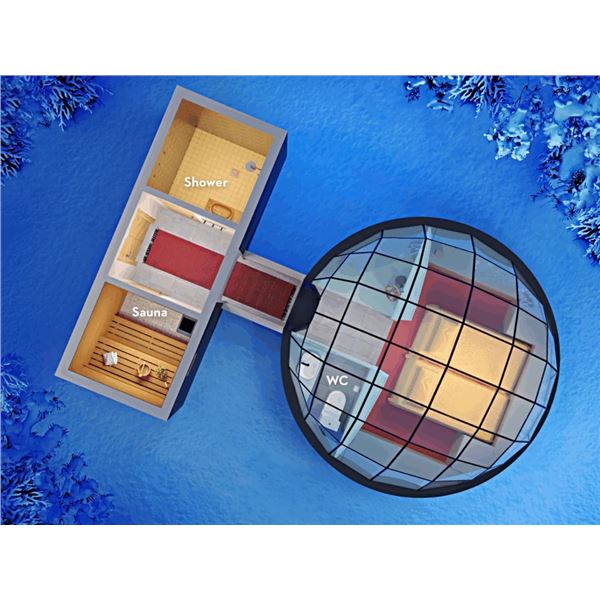 Bedding in the small glass igloo includes two single beds and the cabin includes one double.