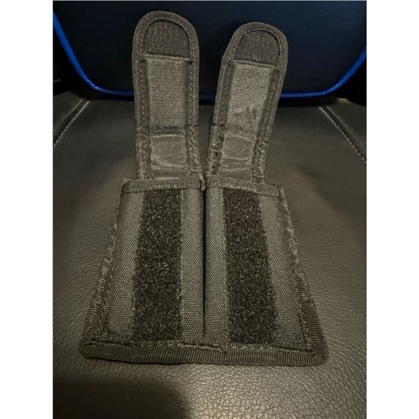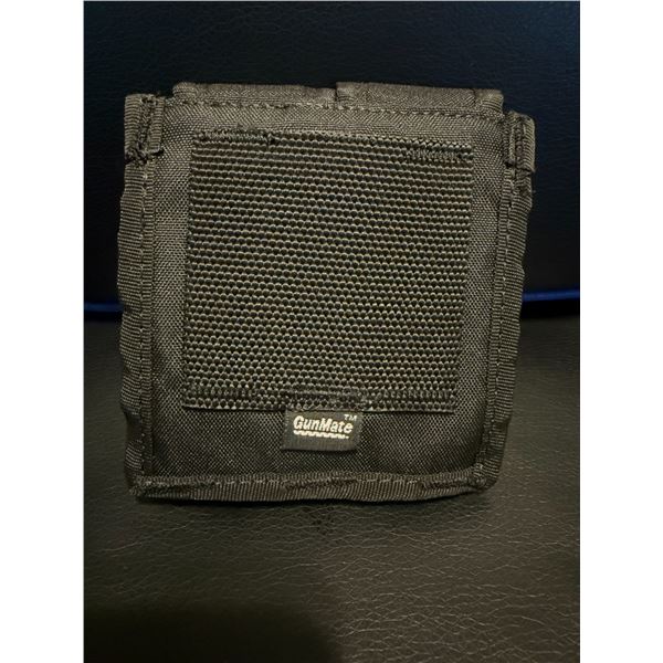 Black GunMate brand belt holder for 2 magazines. Made from durable nylon with reinforced stitching and features two separate compartments, each with individual Velcro-closure flaps. Reinforced stitching for long-term durability. Soft-lined interior to protect magazines. Rear Velcro panel for attaching to compatible gear, bags, or surfaces.