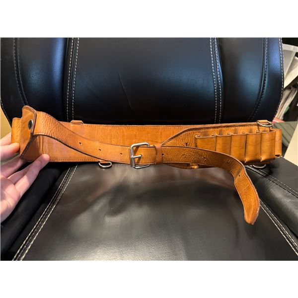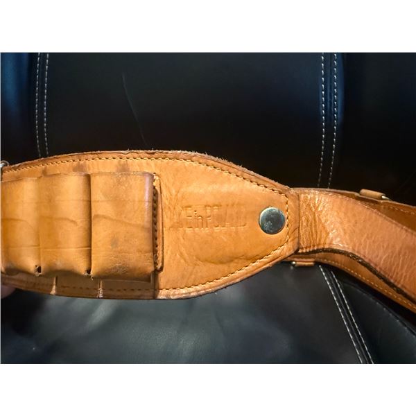 High-quality Polish-made leather shotgun ammunition belt, designed for hunters and sport shooters who appreciate durable gear with classic European craftsmanship. This belt features individual leather shell loops capable of holding 25 shotgun shells.