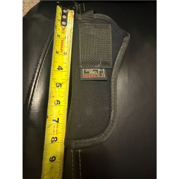 Uncle Mike’s SIDEKICK black nylon pistol holster, known for its lightweight design, durability, and reliable fit. This model features tough reinforced stitching and a sturdy belt loop, making it ideal for range use, outdoor carry, or as a spare holster in your gear setup. Fits many small to medium-frame pistols.