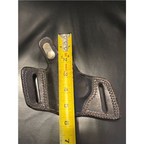 Pre-owned with light signs of wear, but leather is solid and fully functional. Stitching is intact, retention strap works properly, and the holster retains its molded shape.