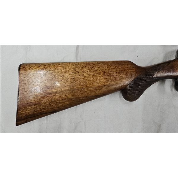 Wood stock is good with checkering and cheek weld. Has original steel butt plate.