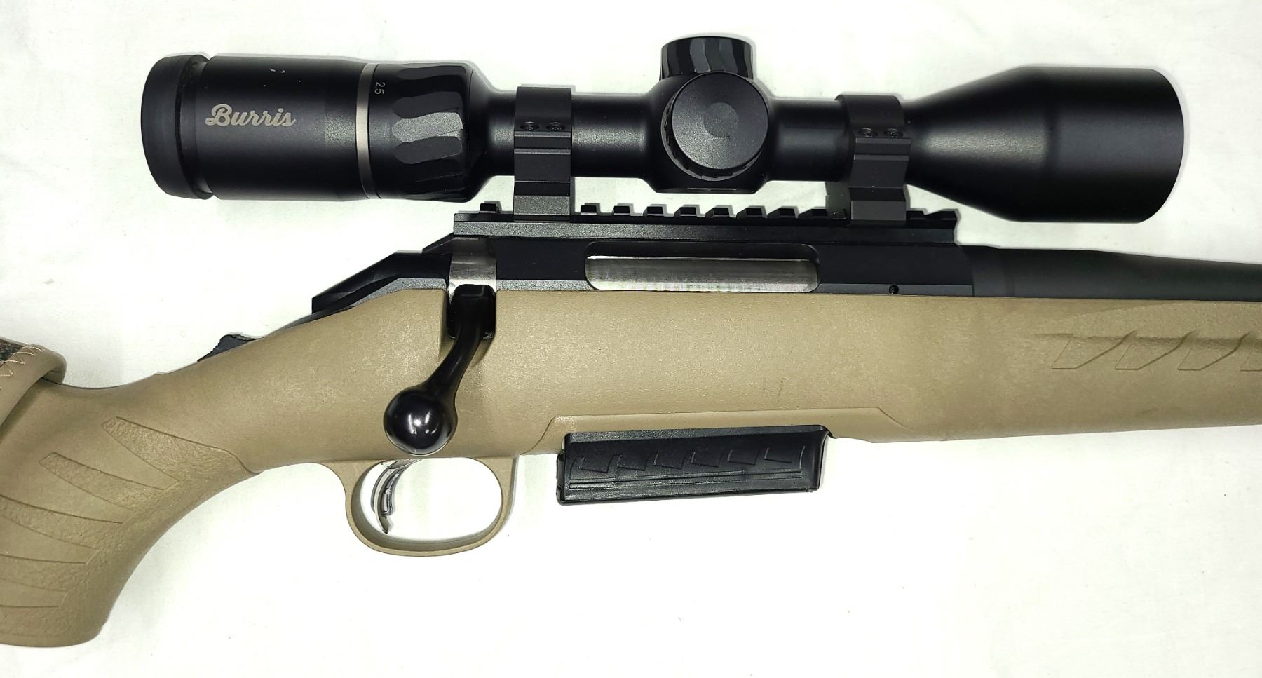 Comes with a Burris Fullfield lV 2.5-10 x 42 on a 1-piece aluminum scope rail