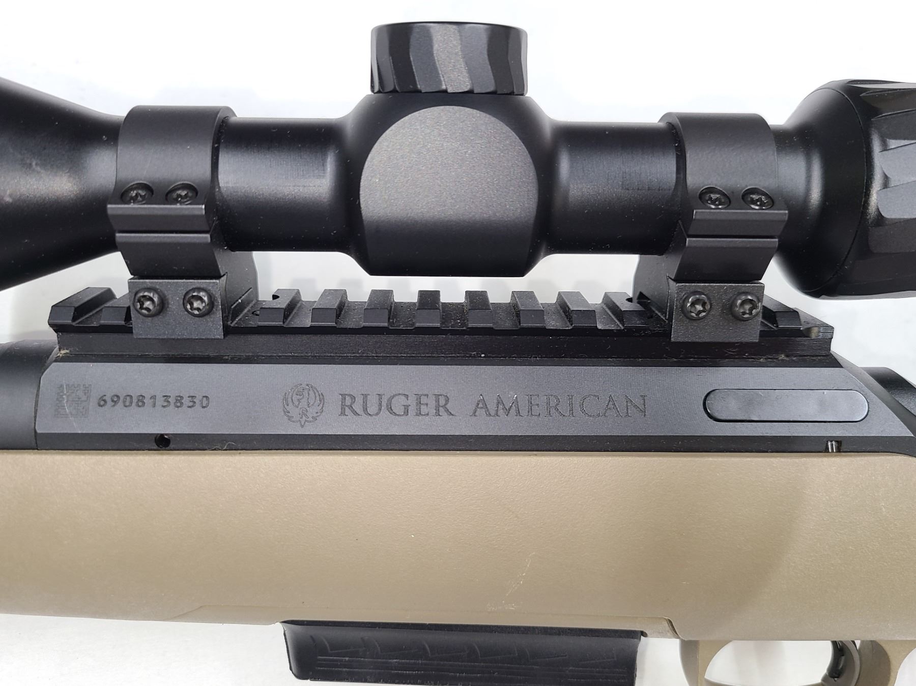 Designed with a cerakote finish, this bolt-action rifle features a Ruger Marksman