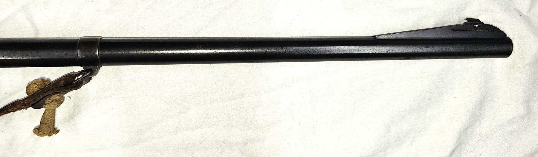It has a 24 inch barrel with gold bead front sight on a matted ramp. The rear sight