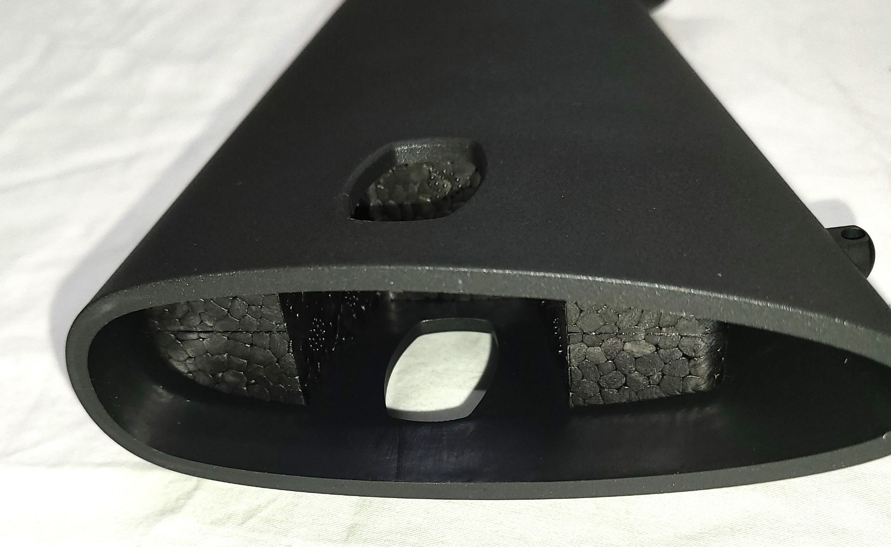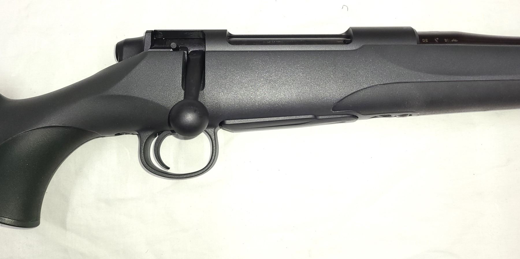 Black synthetic stock with compartment in stock - butt pad is removable and storage provided.