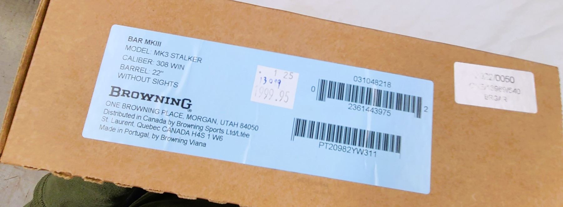 Lot 63 Browning BAR Mark 3 Stalker 308 Win Semi Auto Rifle - NEW in Box