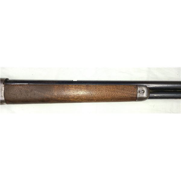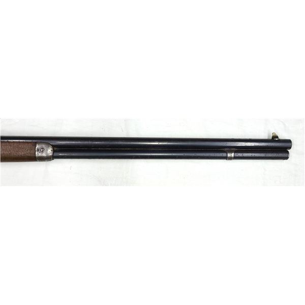 Rear sight is removed and a side mounted Peep Sight is installed. Still has original