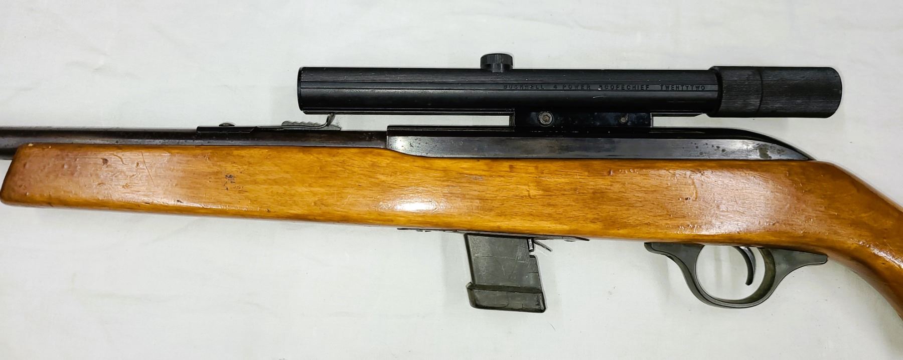 Has a vintage Bushnell 4 x 20 Scopechief scope which is still usuable.