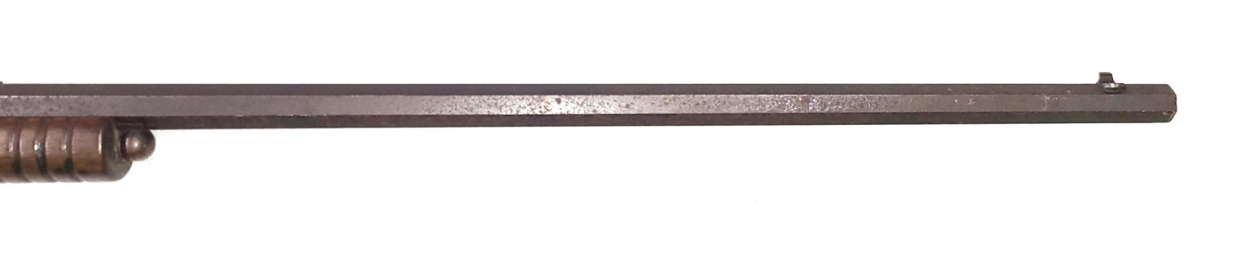The barrel is 23 1/2 inches long. The bore is dirty but riflling still present and visible.