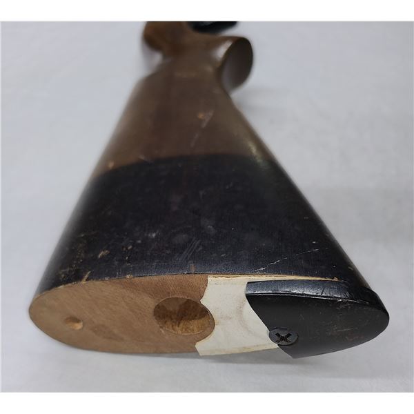 Checkered semi pistol grip and smooth forend. Rear stock has been painted black around butt stock end.