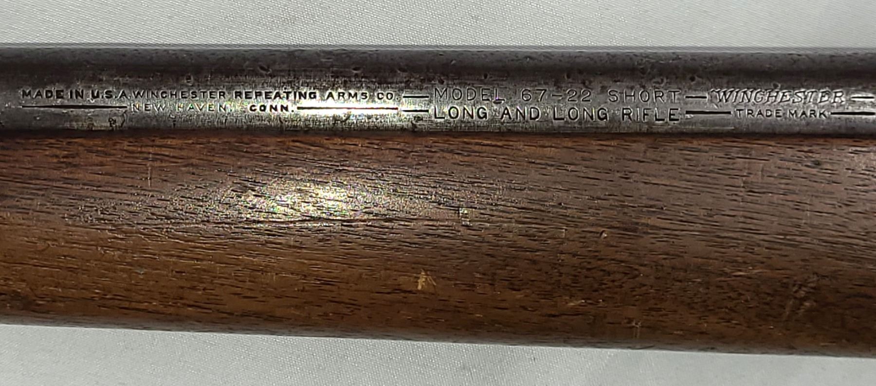 This Winchester Model 67 is a single-shot, bolt-action rifle chambered for .22 Short,