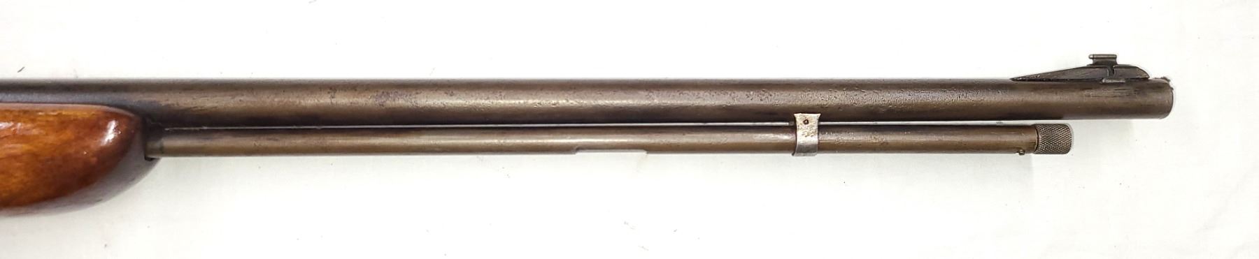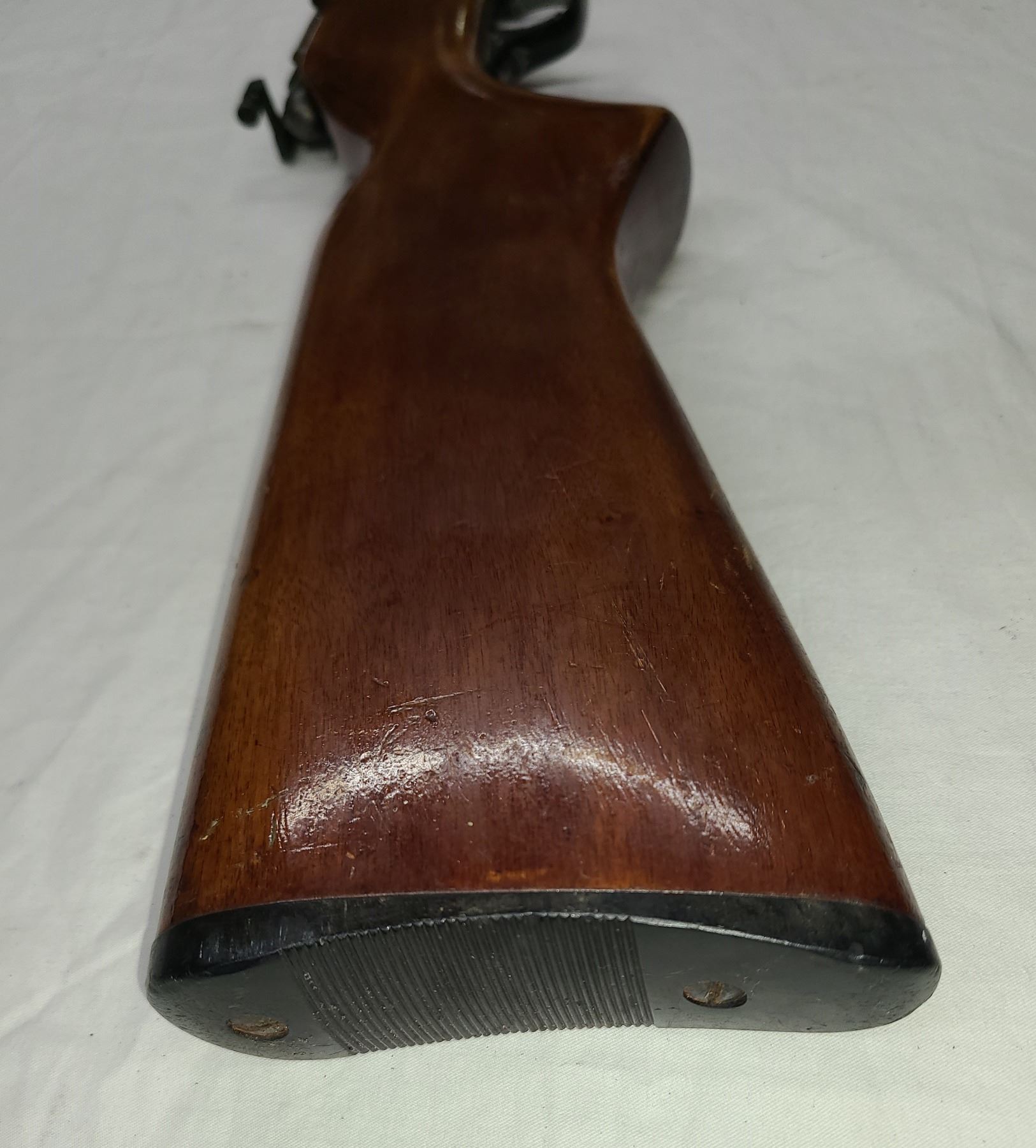 good condition. 24 In. long barrel with Lyman 55 RH target peep sight and a front