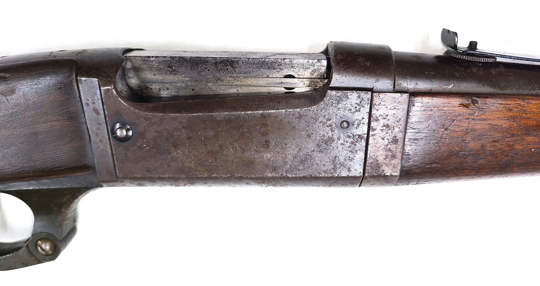 Overall Condition: This rifle retains about 20% of its metal finish overall.