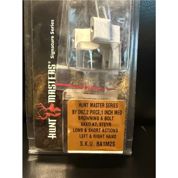 Brand-new DNZ Hunt Master Series 2-piece scope mounting system, finished in silver anodized aluminum. This model is designed to fit several popular hunting rifles and is built for strength, reliability, and precision alignment.