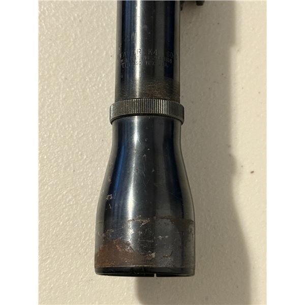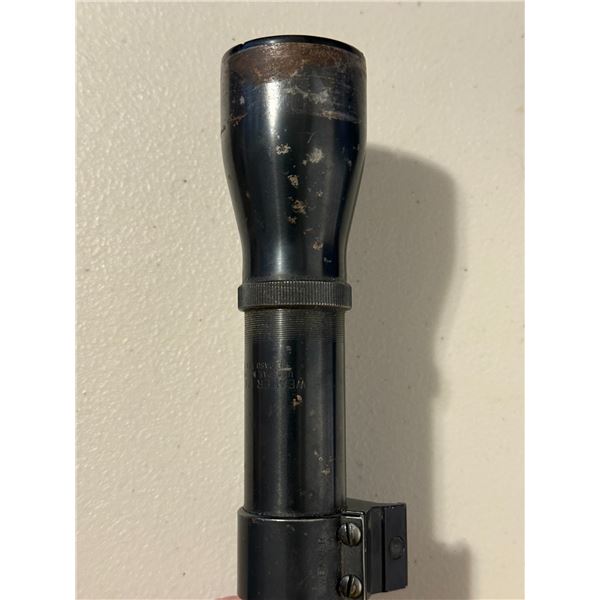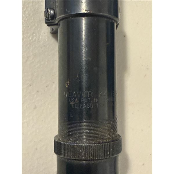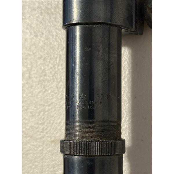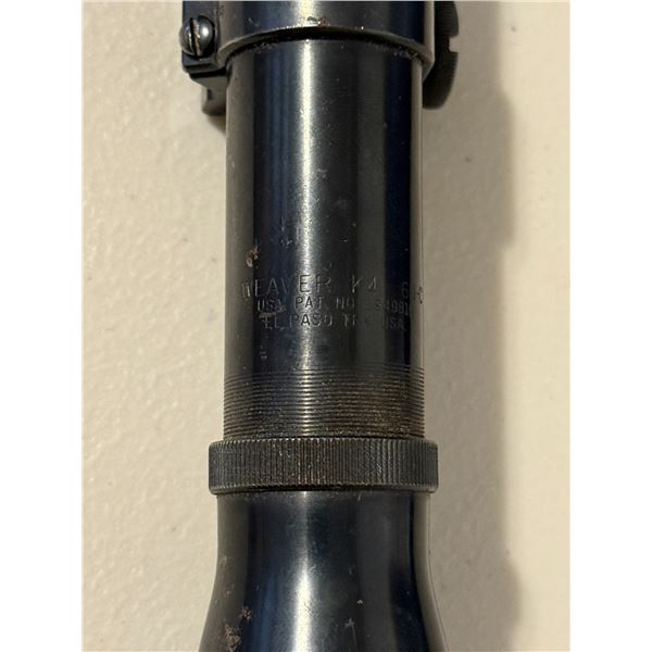 Classic vintage Weaver K4 fixed-power riflescope, marked K4 60-B and El Paso, Texas, USA. These steel-tube Weavers are sought after for their period-correct look on vintage hunting rifles. Includes original ring mounts.