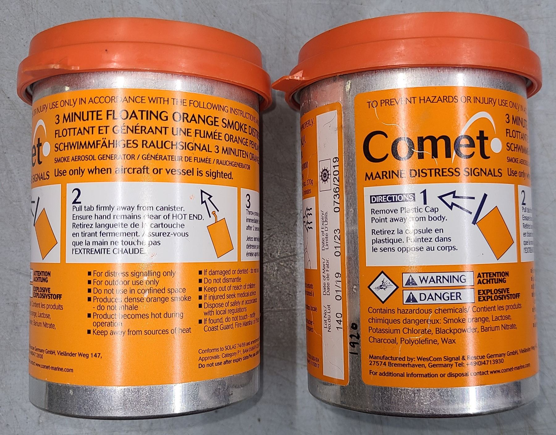 Lot 225 Emergency Orange Smoke Comet Marine Distress Signal x 2 Cans