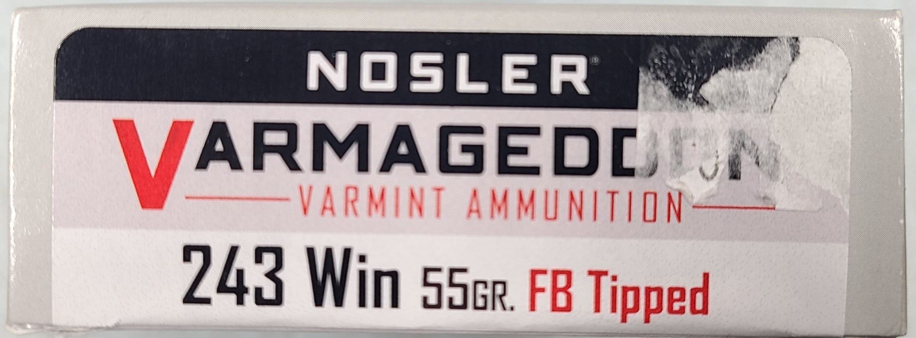 243 Rem 55 gr Nosler Varmageddon Varmint FB Tipped - 20 rds