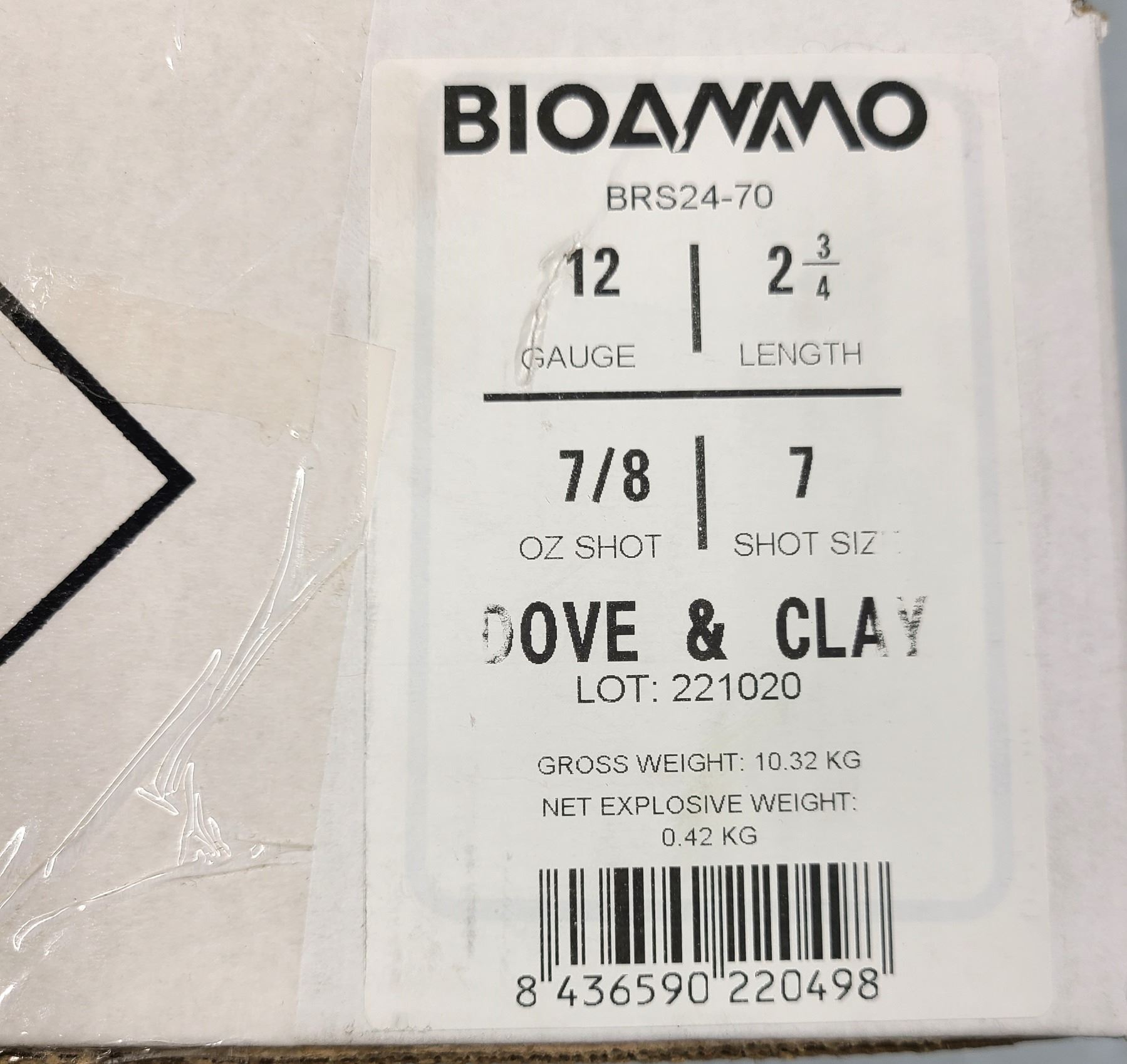12 ga BioAmmo Shotgun BULK 2 3/4 inch #7 Shot - 250 rds