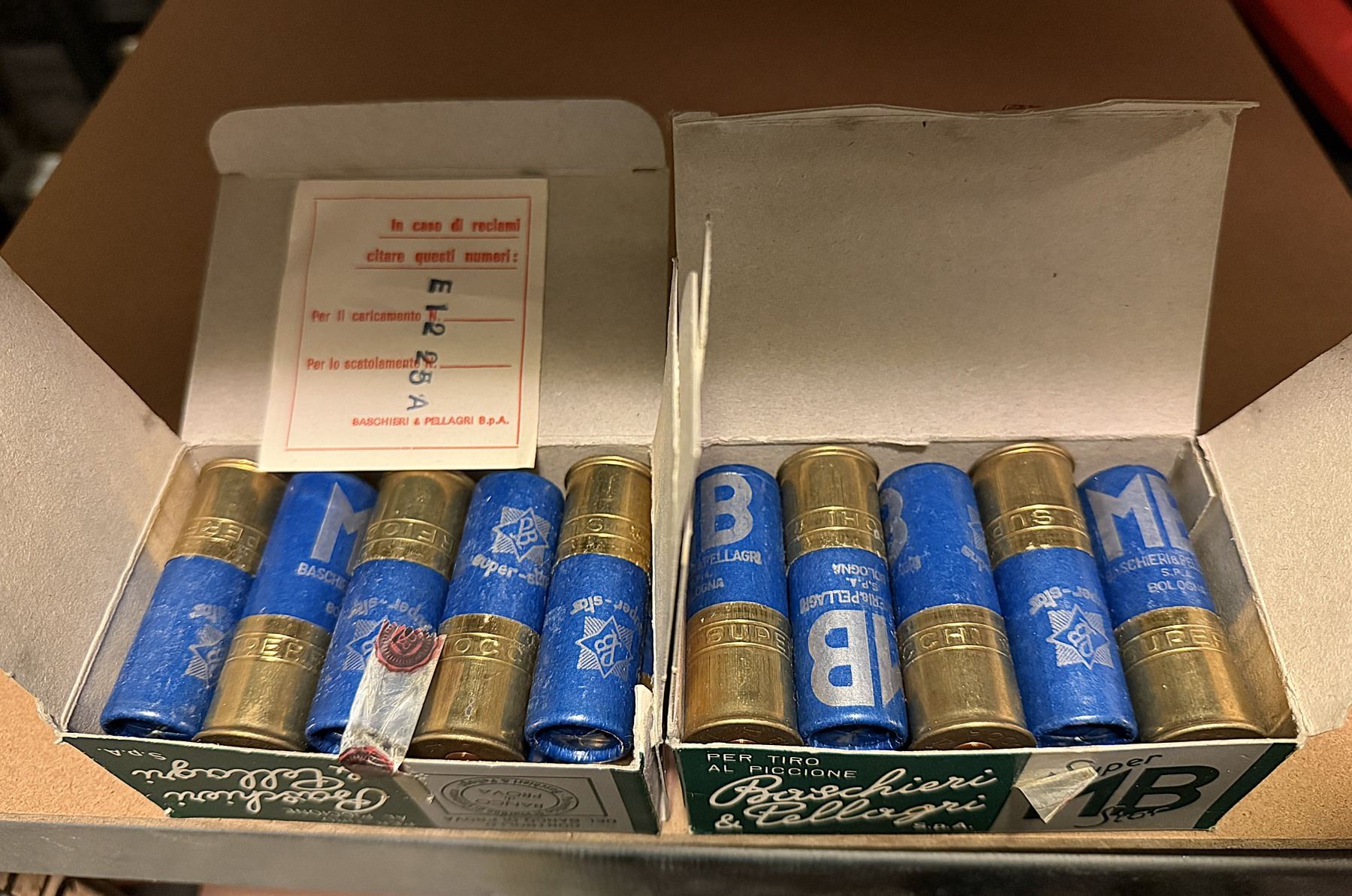 2 boxes of 10 Shells. Both boxes are full. Made in Bologna, Italy.