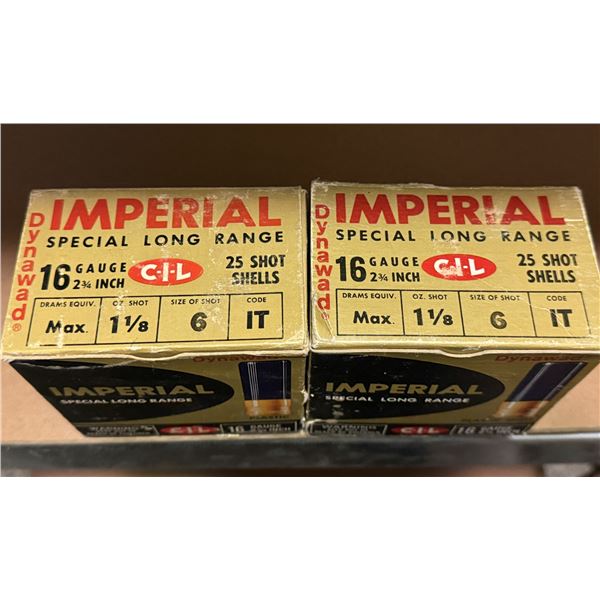 2 Boxes of 16ga shot shells. 25/pack. 2 3/4" inch. Full boxes.