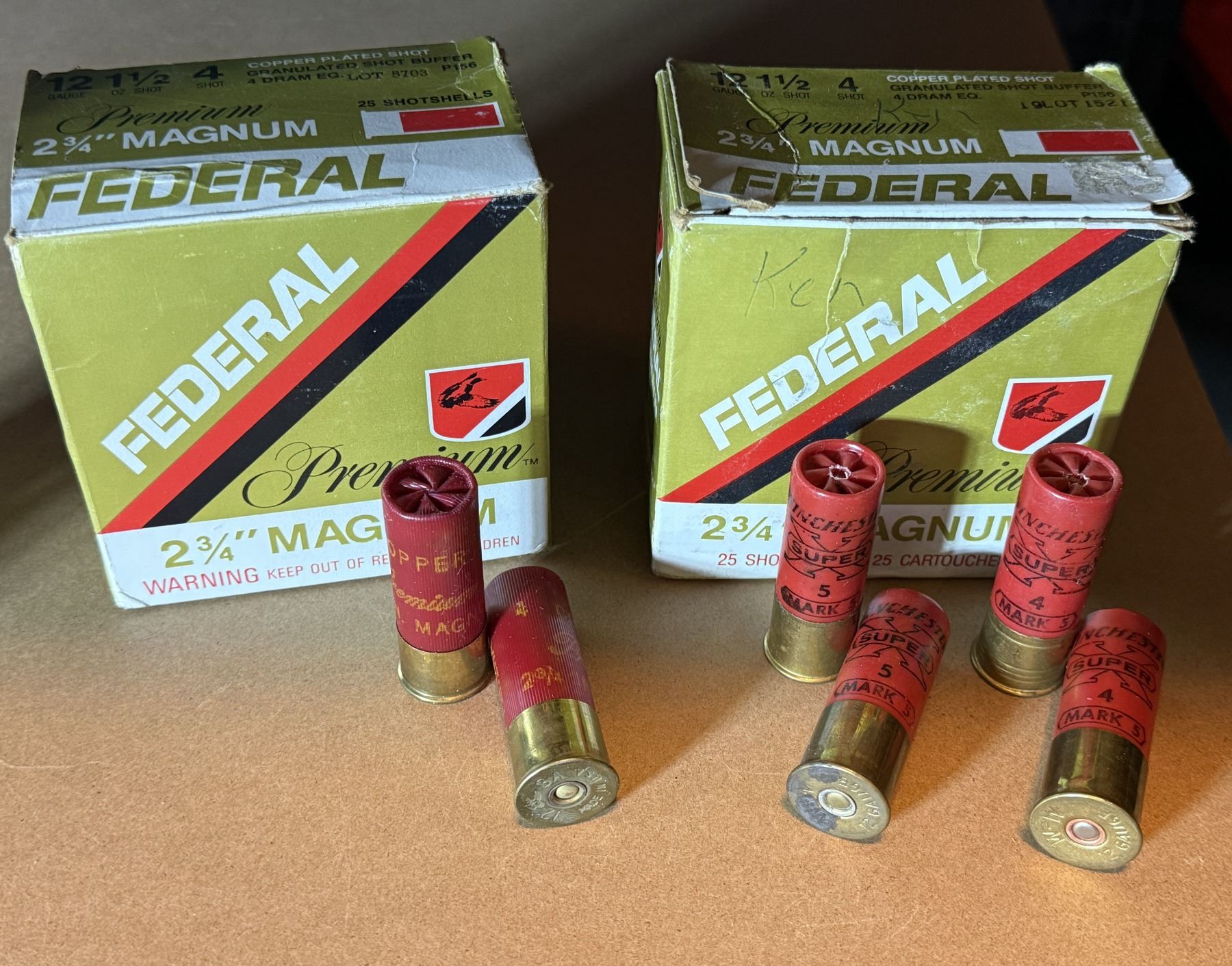 Box 2. Mixed Winchester 12ga #4 & #5 Lead Shotshells in Federal Box