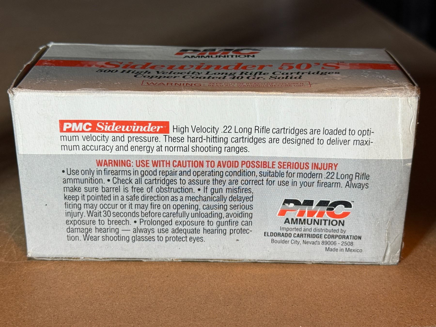 500 high velocity long rifle cartridges. Copper coated 40 gr. Solid. PMC ammunition Sidewinder 50'S.