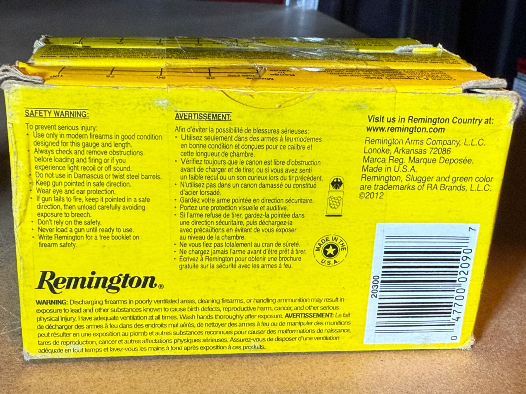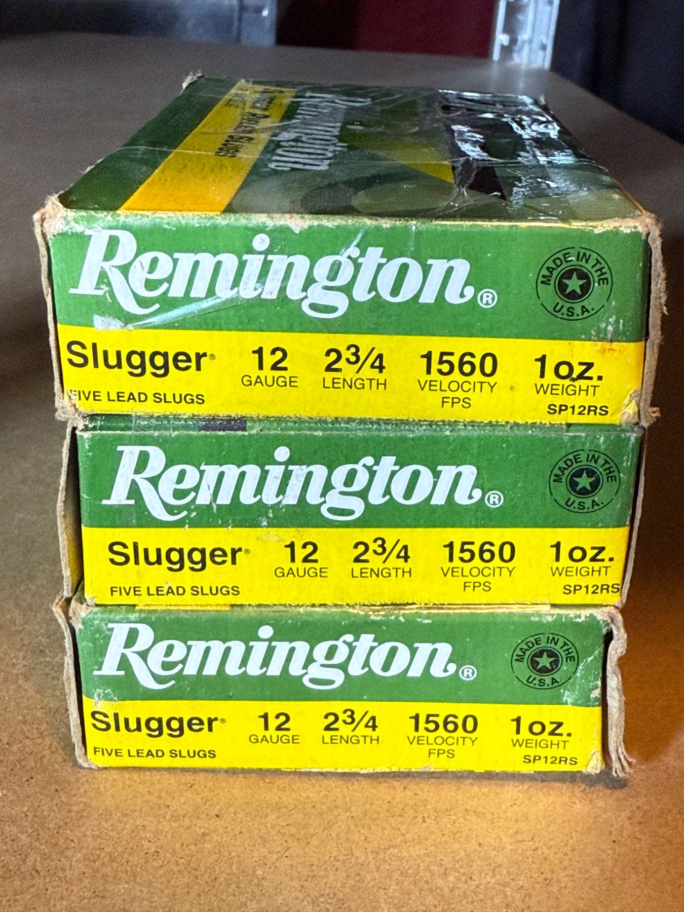 12 Ga Remington Slugger 2 3/4" - 3 Boxes of 5. 1 oz lead Slugs.
