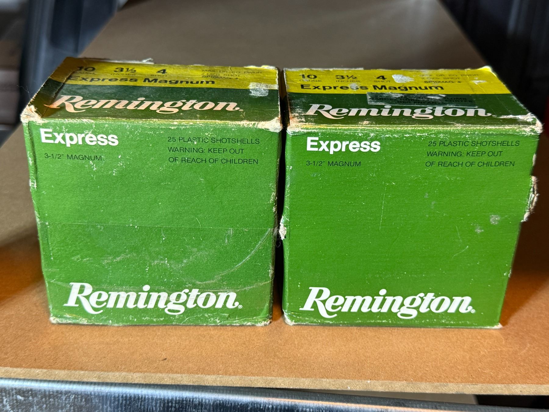 2 full boxes of Remington Express Magnum 10 gauge shot shells. 25/box. 3.5".