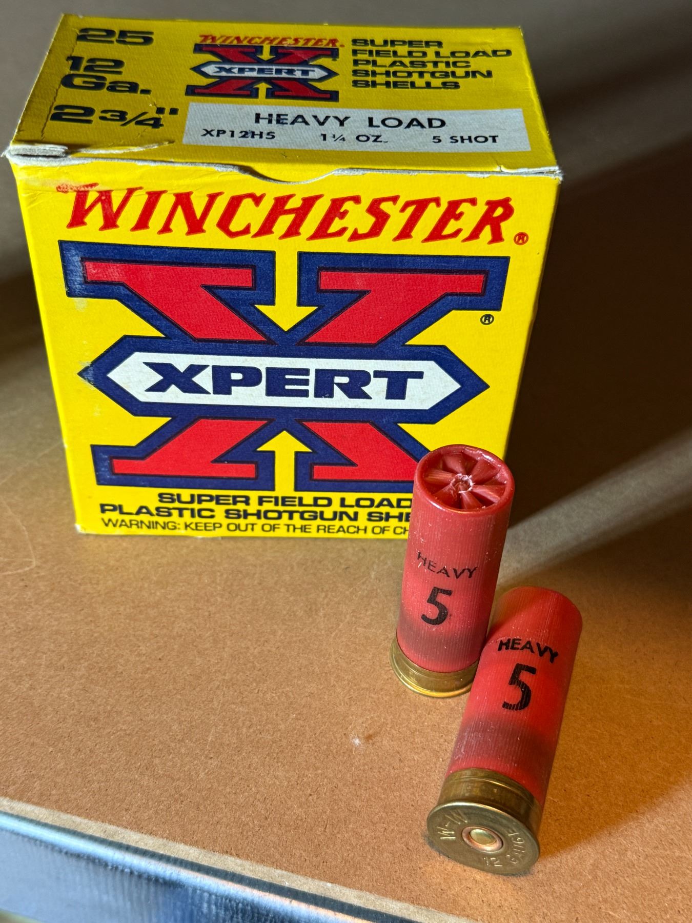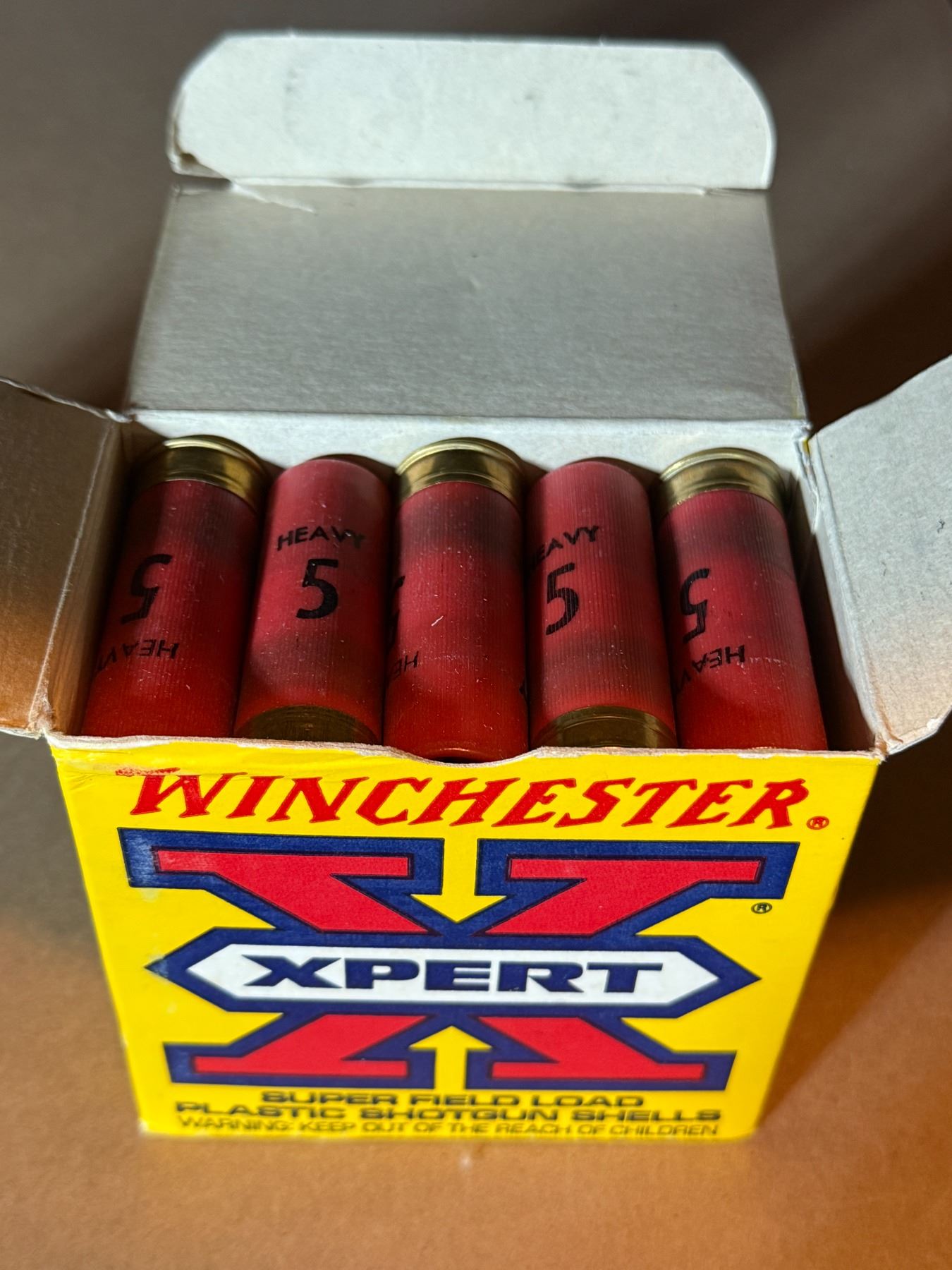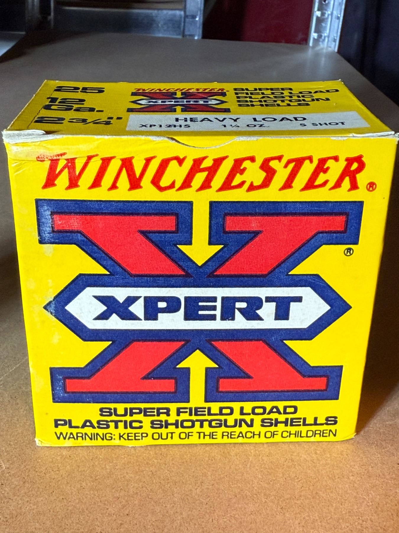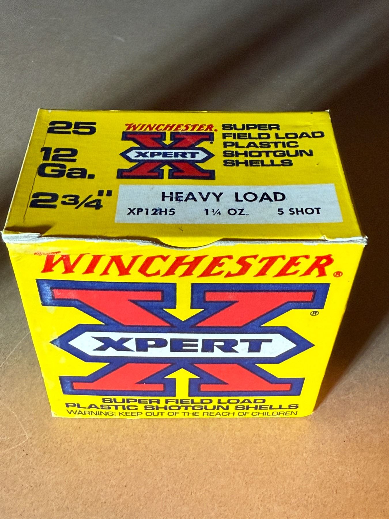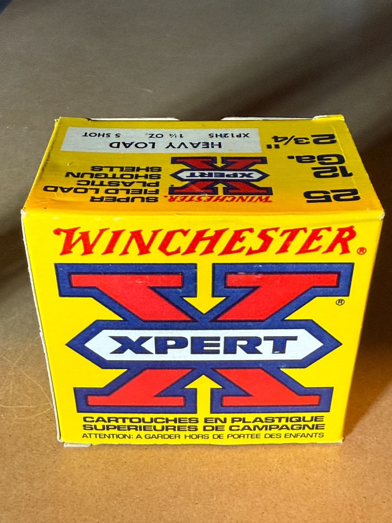 Full box (25) of Winchester XPERT 12 Ga. 2 3/4" Super Field Load Plastic Shotgun Shells. 5 shot.