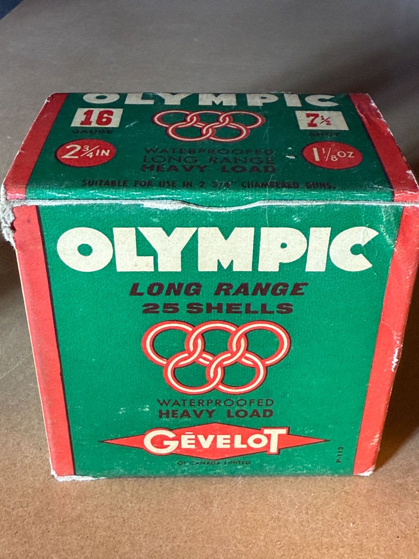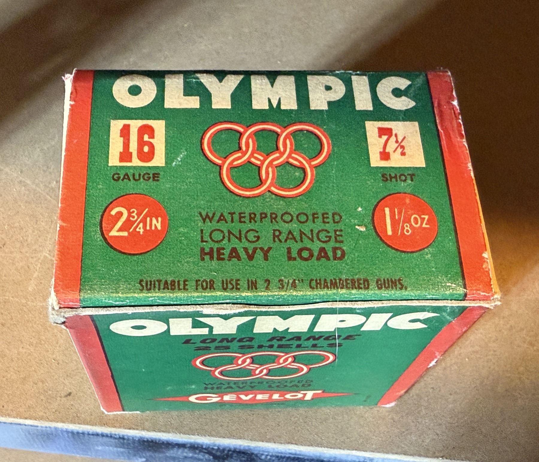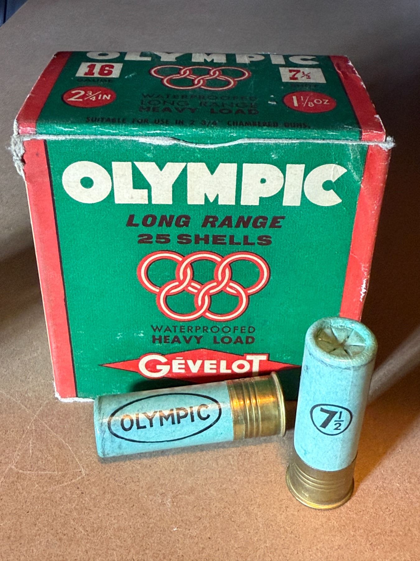 Collector's Box of Olympic 16 Ga 2 3/4" Long Range Heavy Load Shells. Waterproof. 7 1/2 Shot. 1 1/8 oz.