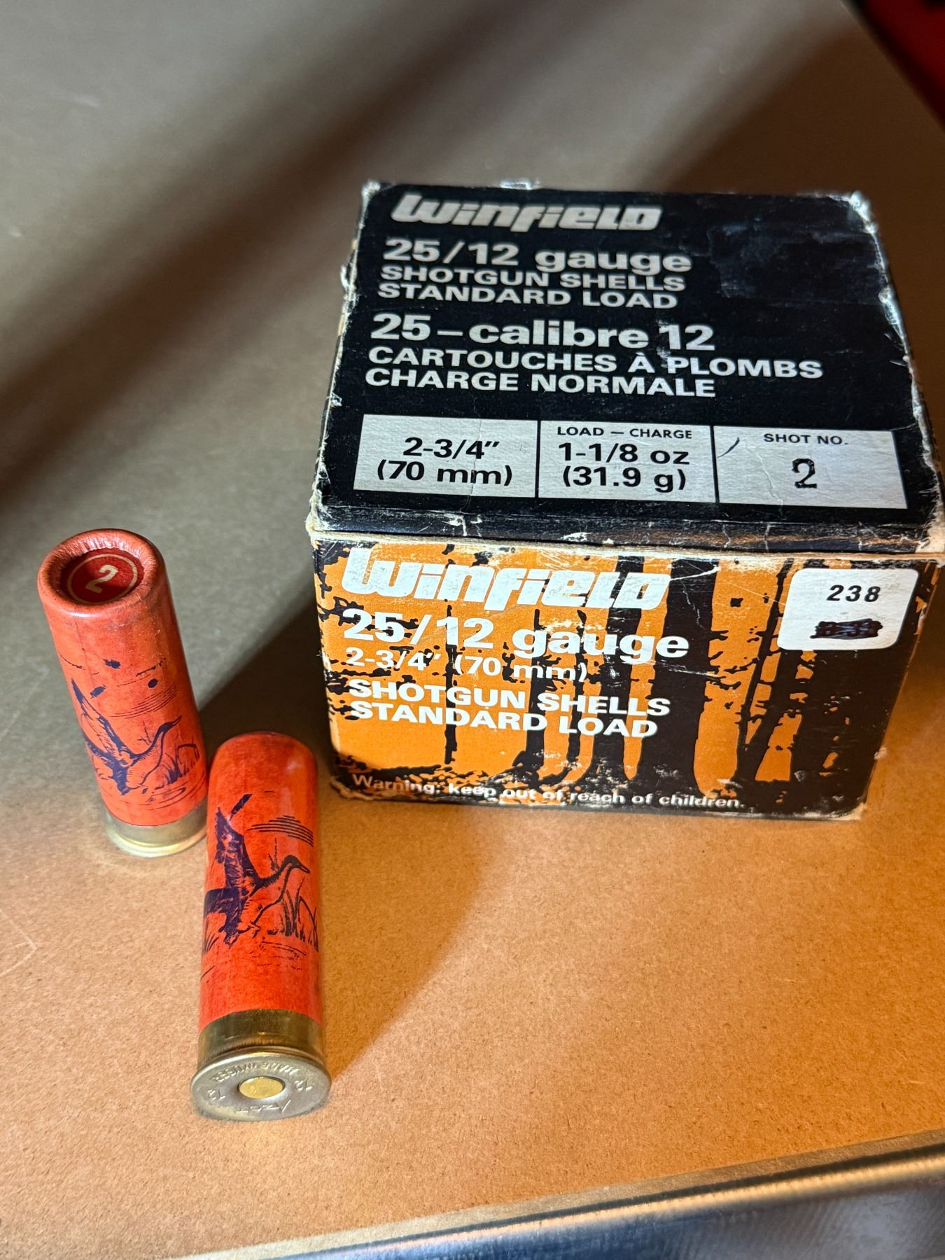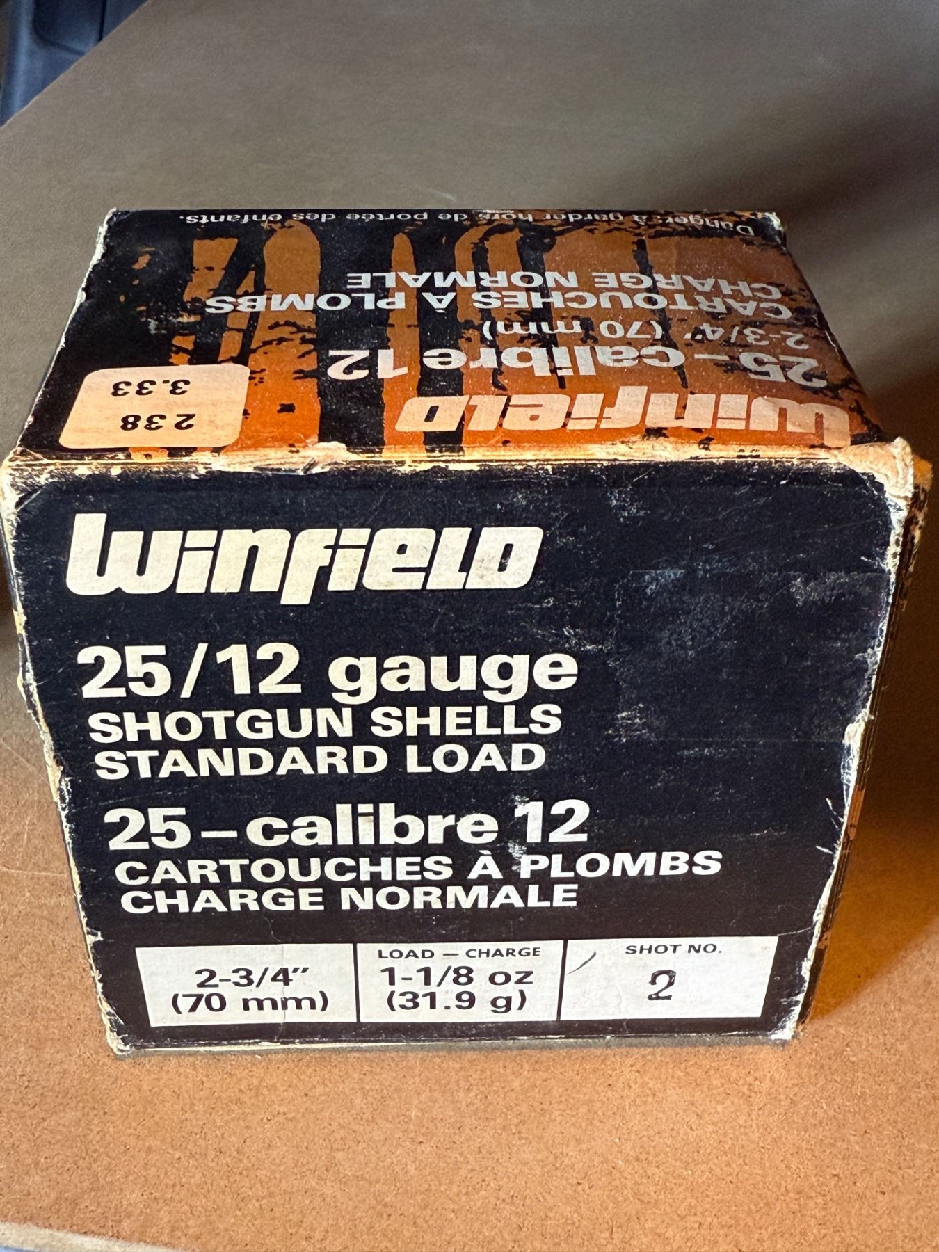 Winfield 12 Gauge 2 3/4" Standard Load Shotgun Shells. Shot No. 2. 1 1/8 oz. Full box of 25.