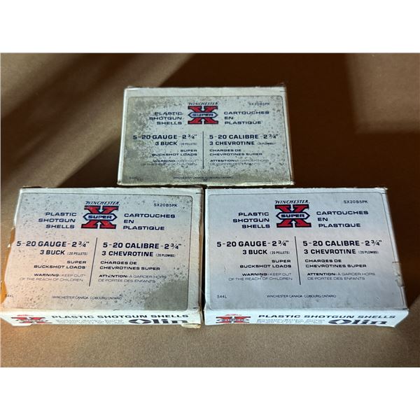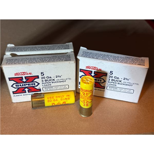 Western Super X 20 Ga. Super Buckshot Loads. 2 3/4" 3 buck (20 pellets). 3 full boxes.
