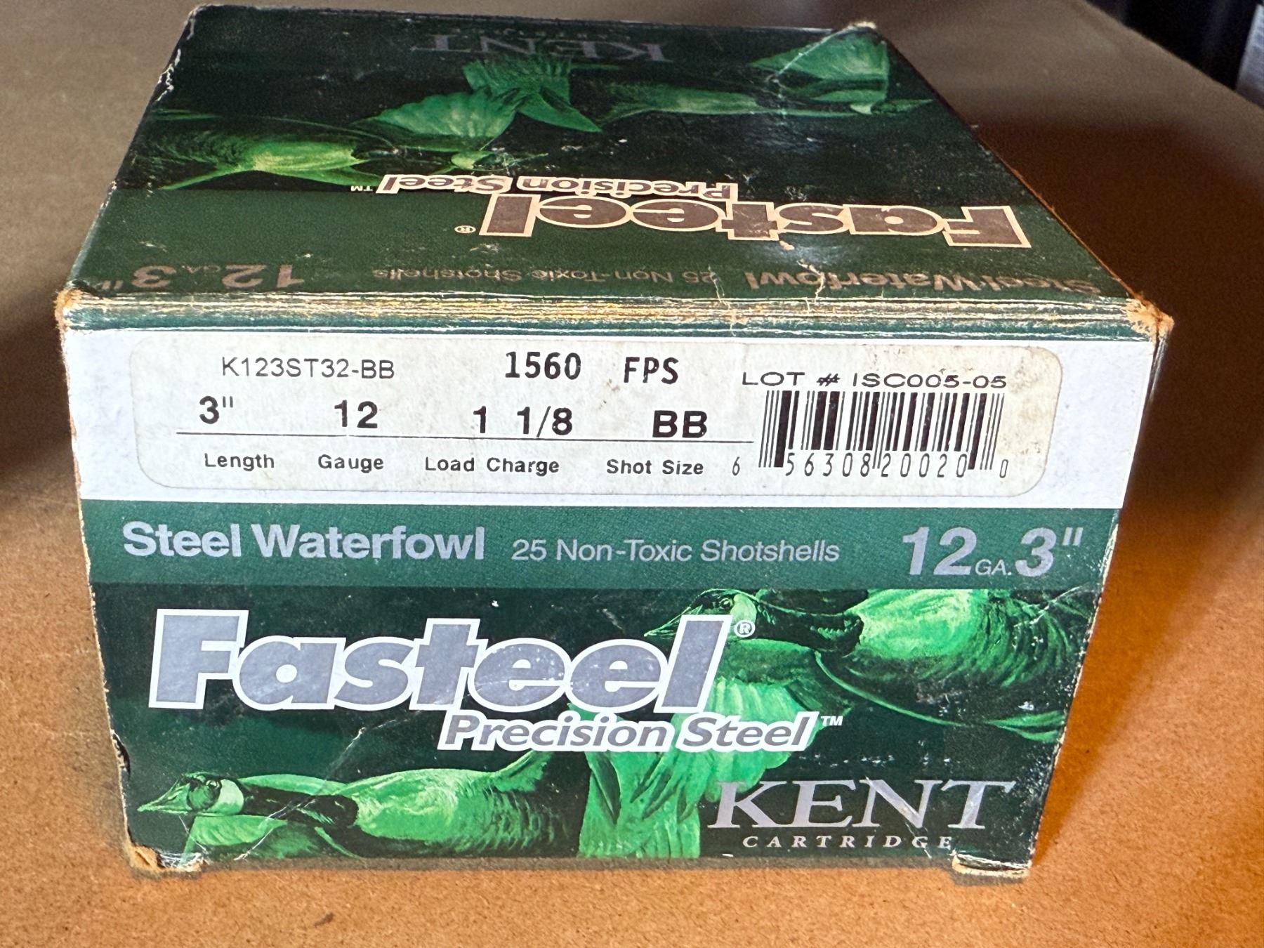 Fasteel Precision Steel 12 Ga. 3" Non-Toxic Shotshells. Shot size BB.